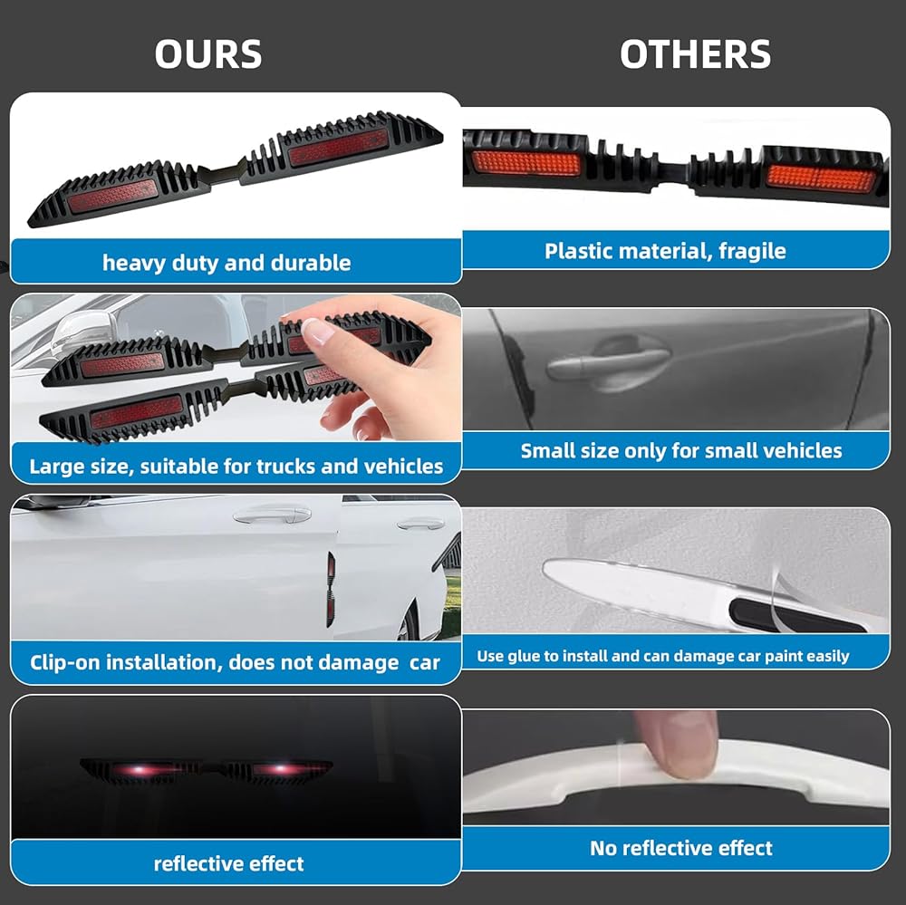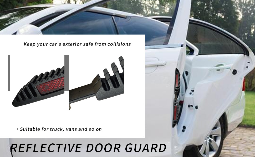 - العبوة الكاملة: تتضمن واقيين لحافة الباب مع أشرطة عاكسة، مثالية لحماية حواف الأبواب الأمامية أو الخلفية على كلا جانبي سيارتك