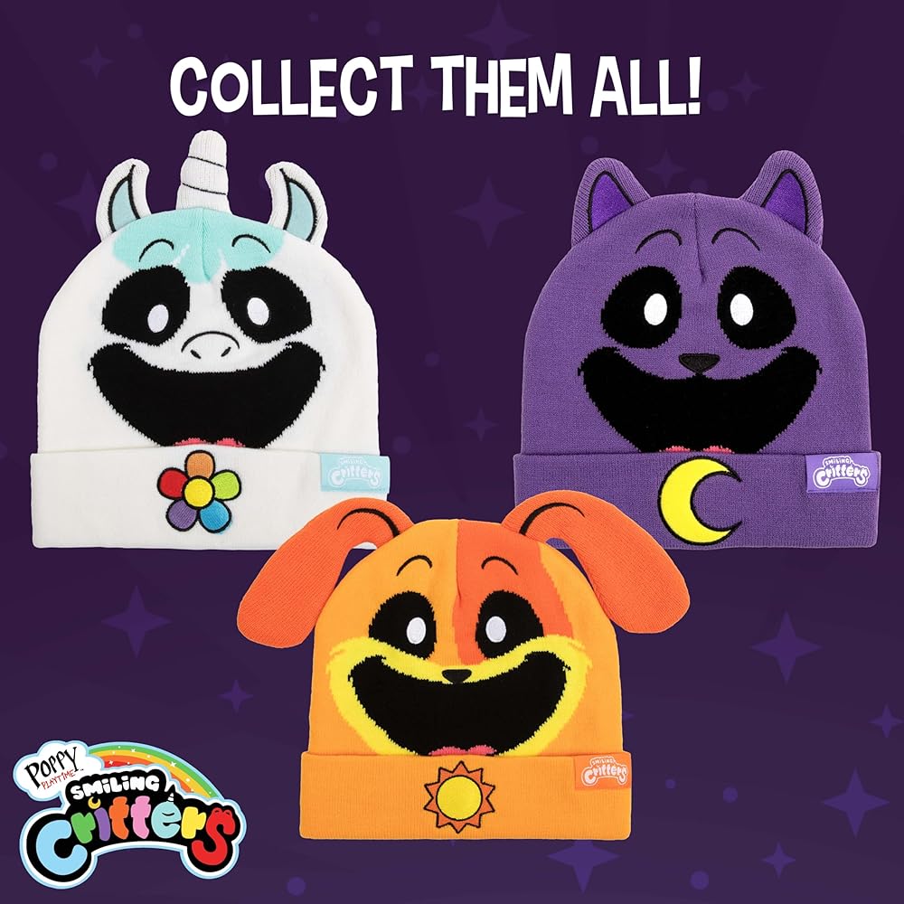 From the hit game series Poppy Playtime comes the Smiling Critters Knit Beanie – Craftycorn! This cozy cold-weather accessory brings Craftycorn to life with ultra-soft knit fabric, premium embroidery, and playful 3D ears and a unicorn horn that pop right off the top. Designed for fans of the viral horror game and its adorable side characters, this beanie's colorful design features a signature rainbow flower patch and high-quality construction that ensures both comfort and style. Whether you're bundling up for outdoor adventures or showing off your fandom indoors, this one-size-fits-most beanie is a must-have for Smiling Critters collectors. Crafted with love and officially licensed, it's the perfect way to keep warm while staying true to your creepy-cute aesthetic.