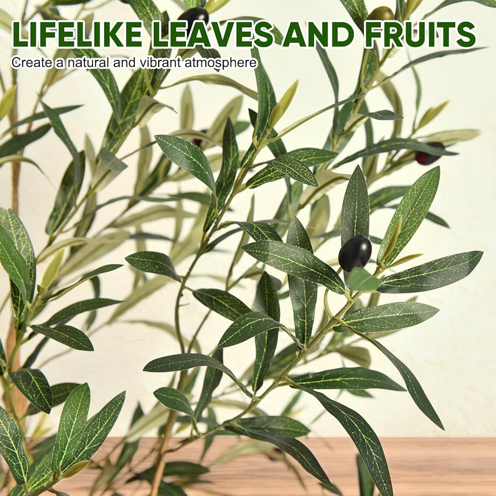 High Quality and Sturdy: Crafted from durable plastic and metal wire, this fake olive tree is robust and long lasting. It not only maintains its color and shape over time, but its sturdy pot also enhances overall stability, preventing tipping