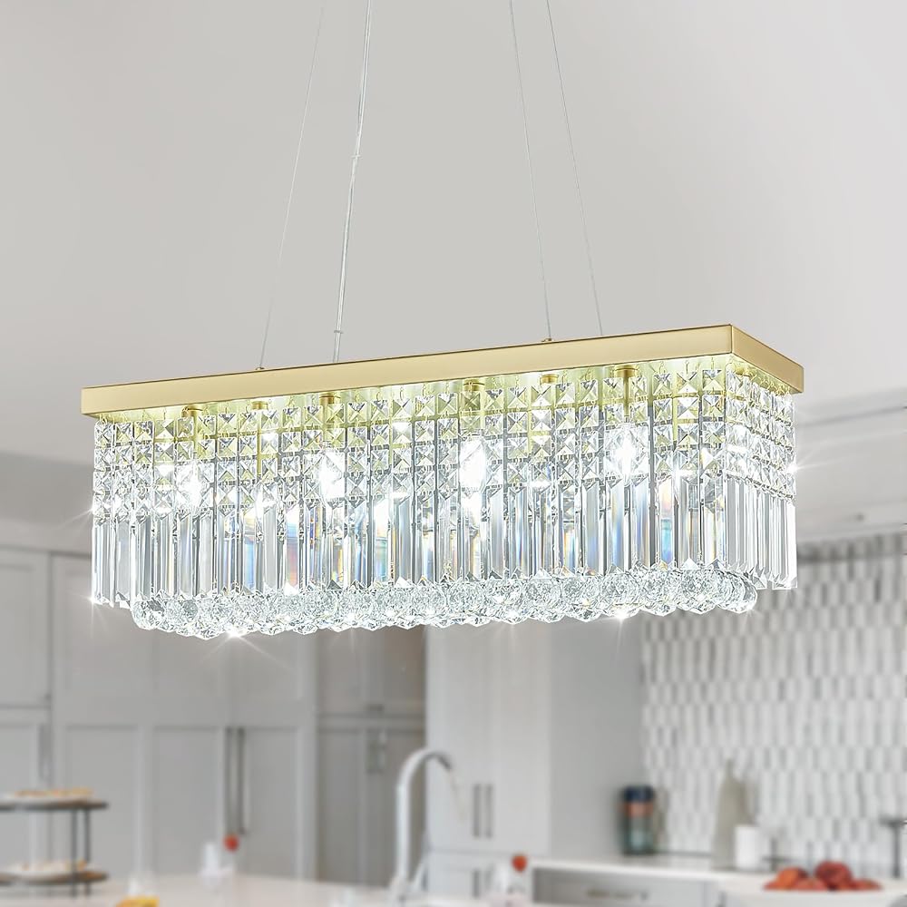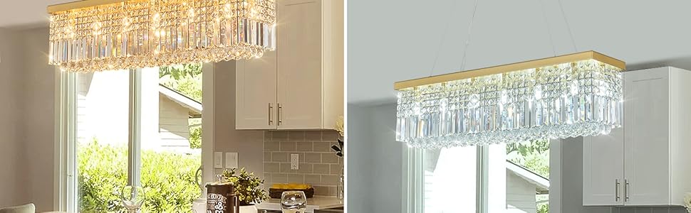 【 ثريا كريستال فاخرة 】 تتميز هذه الثريا الحديثة بتصميم كريستالي عالي الجودة مع حامل إضاءة مستطيل ذهبي. عند تشغيل الأضواء، ستنعكس إضاءة الثريا الذهبية المستطيلة من خلال البلورات، مما يضيف جوًا رومانسيًا ورائعًا ولامعًا إلى غرفتك، وهو مثالي للديكور الداخلي مثل غرفة الطعام وجزيرة المطبخ وغرفة المعيشة وغرفة النوم والمزيد.