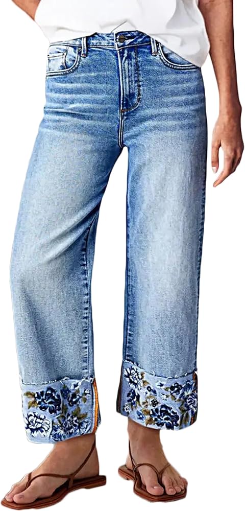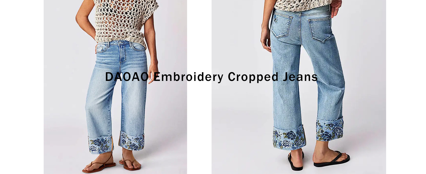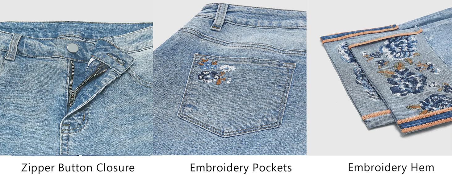 • المزايا: جينز مطرز بأساور للنساء يتميز بـ 4 جيوب، سحاب أمامي وزر للإغلاق، حاشية خام مطرزة، قصة جينز مستقيمة الساق، طراز قصير حتى الكاحل، جينز مستقيم الساق متوسط الارتفاع للنساء مثالي للأزياء العصرية