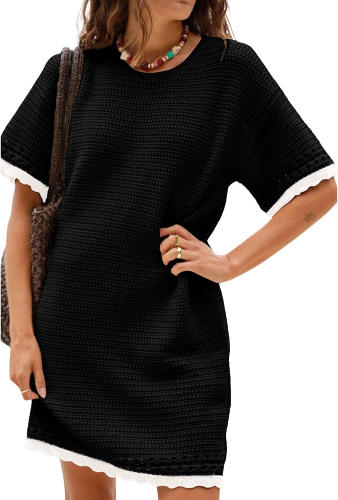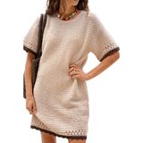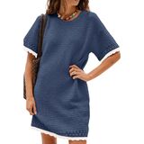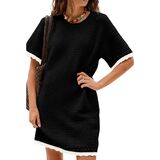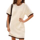 المزايا: هذا الفستان النسائي القصير العصري ذو المقاس المريح والأكتاف المنسدلة يوفر سهولة دون مجهود، في حين أن الغرز المنسوجة مع تفاصيل متباينة ترفع من أسلوبك اليومي، هذه العناصر الكلاسيكية تسمح لك بسهولة خلق مظهر كاجوال وعصري