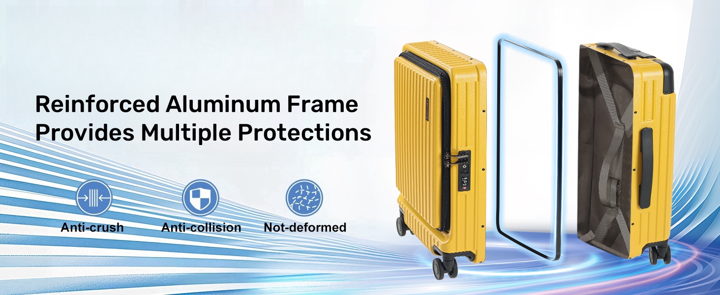 حماية معززة: إطار من سبائك الألومنيوم يعزز قدرة التحمل، ويضمن بقاء الأمتعة سليمة ويمنع التشوه أثناء السفر والنقل؛ الإطار الأوسط فقط مصنوع من الألومنيوم. لا يمكن فتح الأمتعة في المنتصف
