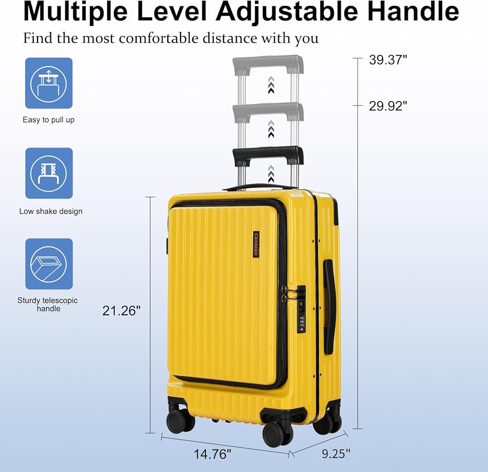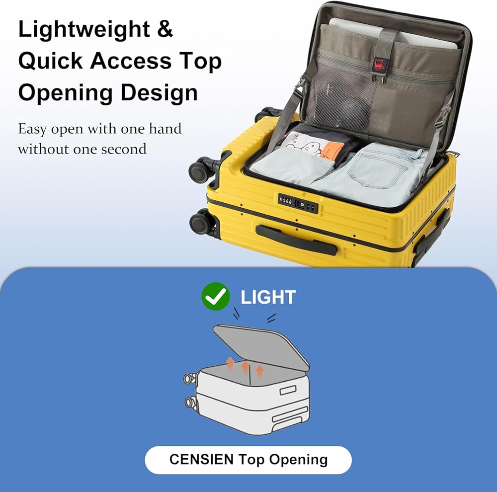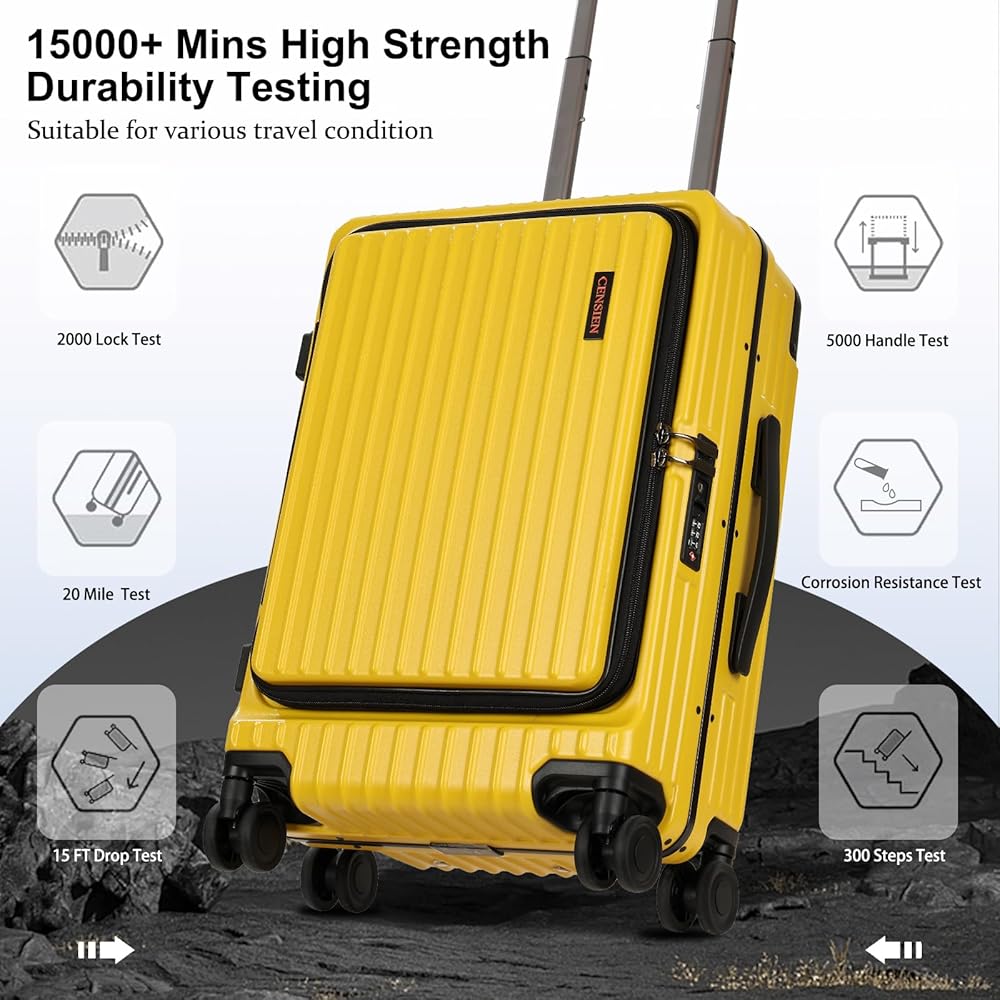 غلاف متين من مادة ABS والكمبيوتر الشخصي: تحمل CENSIEN الأمتعة المصنوعة من مواد صلبة خفيفة الوزن ومتينة؛ سطح جانبي صلب مقاوم للخدش يحافظ على حقيبتك في حالة جيدة للاستخدام طويل الأمد