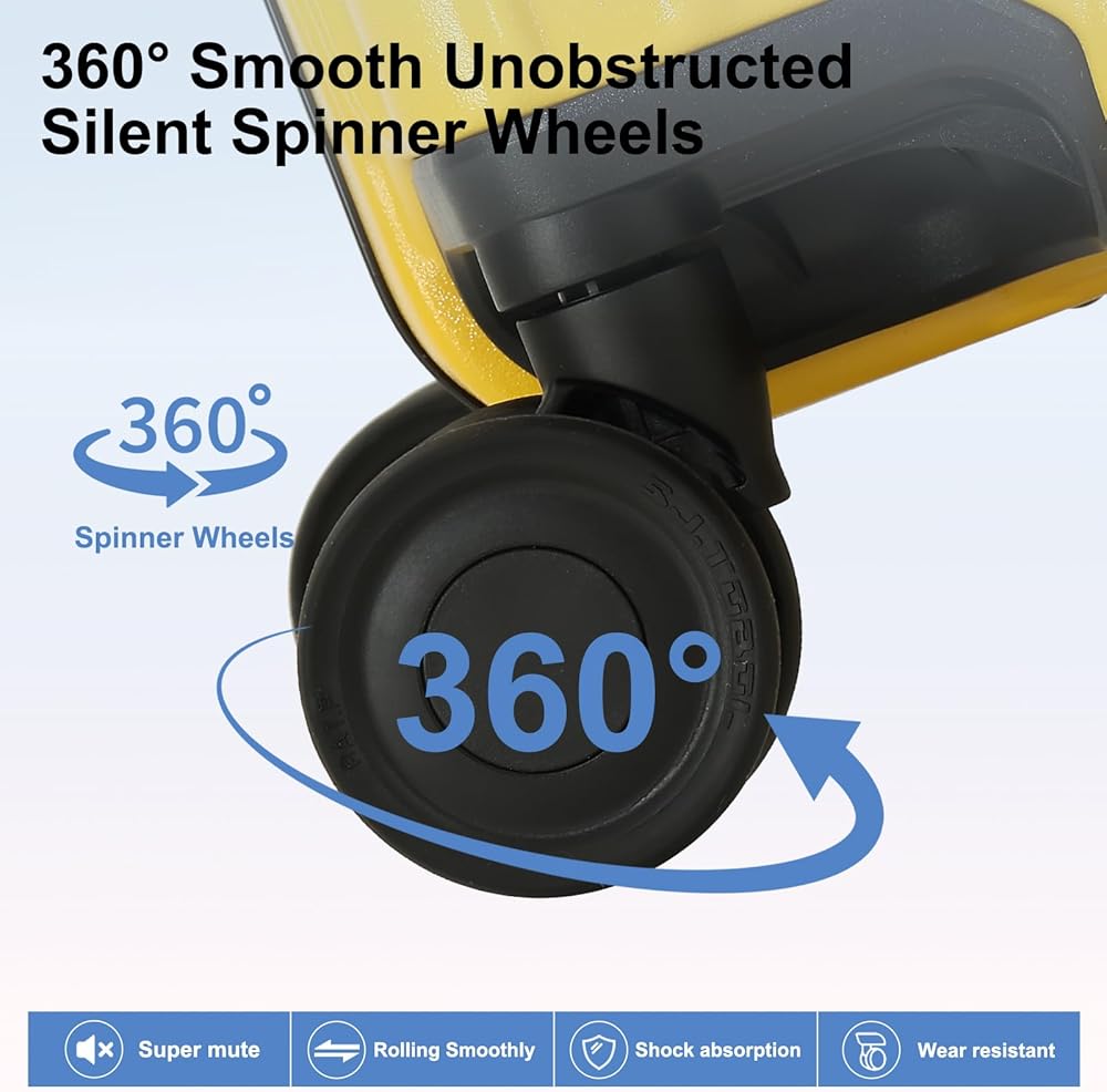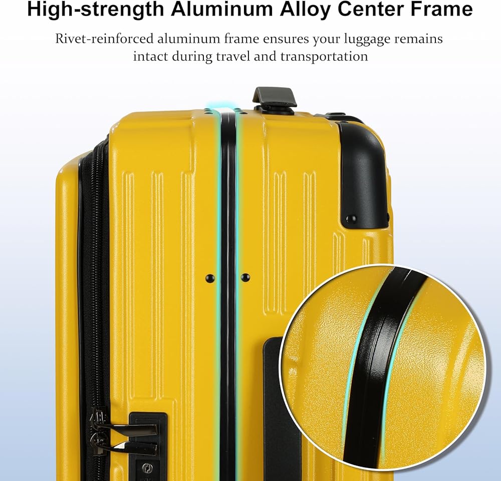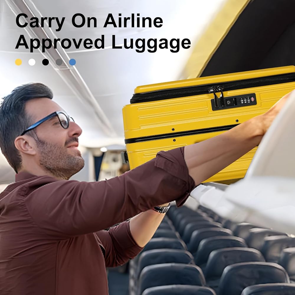 حمل الأمتعة بعجلات دوارة، حقيبة مقاس 20 بوصة معتمدة من شركة الطيران، حقائب ذات هيكل صلب ABS+PC خفيفة الوزن مع إطار من الألومنيوم، فتحة علوية، قفل TSA (أصفر، قطعة واحدة)
