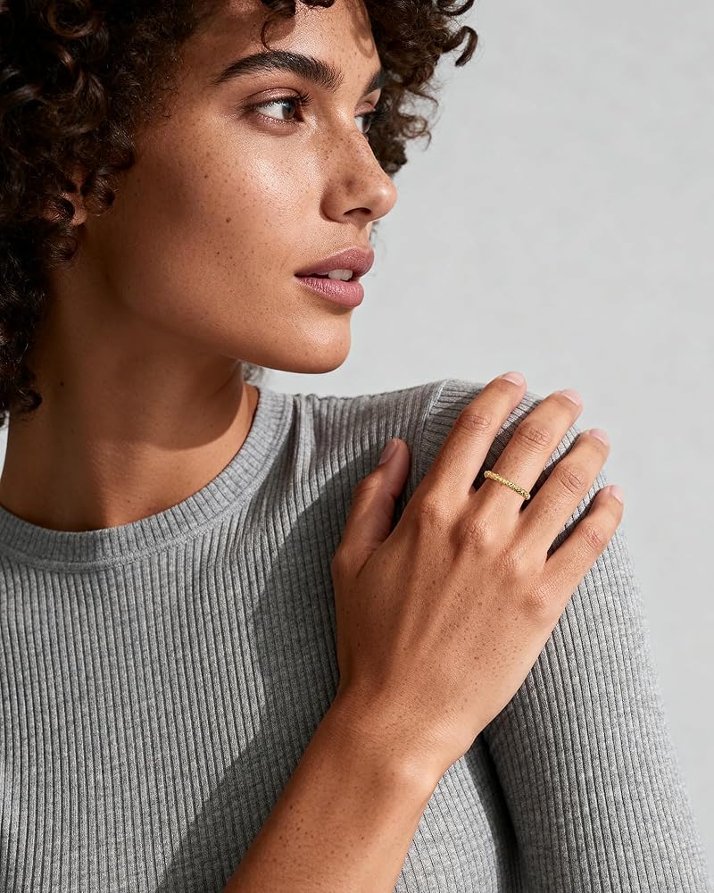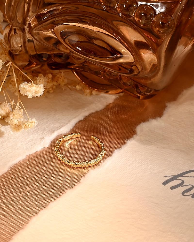 خواتم مضادة للحساسية للنساء: تتميز حلقتنا المطلية بالذهب عيار 14 قيراط بطلاء ذهبي عيار 14 قيراط يدوم طويلاً ويقاوم البهتان ويحافظ على لمعانه. خالي من النيكل والرصاص، هذا الخاتم المطلي بالذهب عيار 14 قيراط مناسب للبشرة الحساسة، لذلك يمكنك ممارسة هذه الخواتم البسيطة للنساء طوال اليوم دون تهيج
