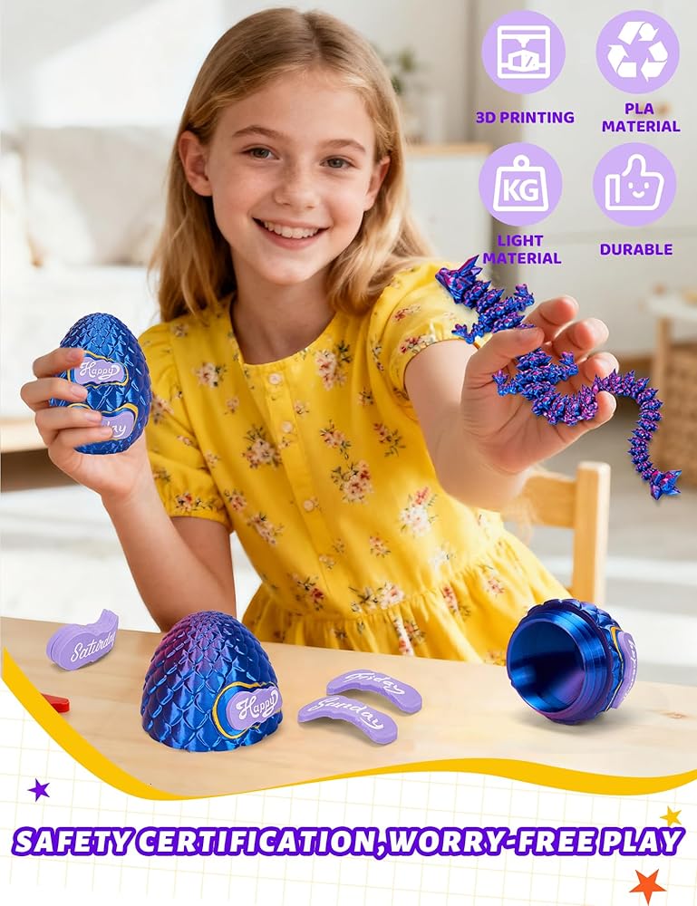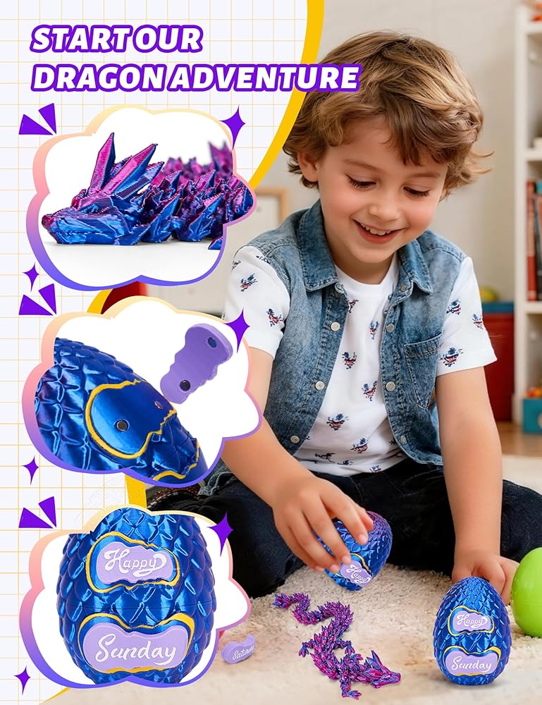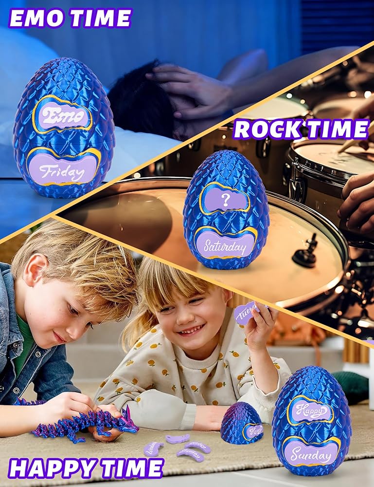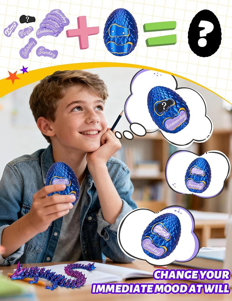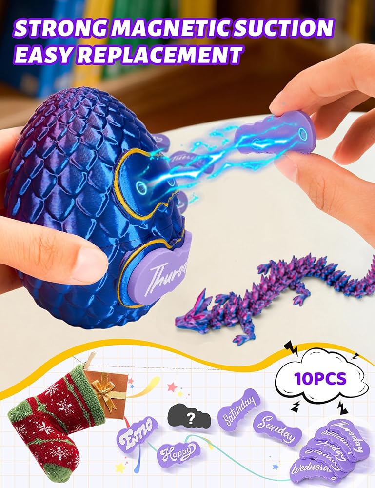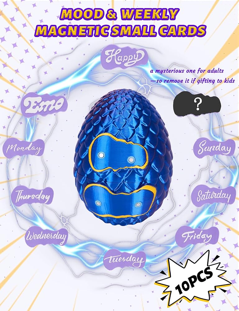 🐉 【أكثر من مجرد لعبة تنين】- تحتوي بيضة التنين ثلاثية الأبعاد هذه في الواقع على تنين مطبوع ثلاثي الأبعاد مفاجئ بالداخل! تأتي مع 7 بطاقات يومية للتخطيط الأسبوعي و3 بطاقات مزاجية (سعيد، حزين، وغامض للبالغين - لذا قم بإزالتها إذا كانت هدية للأطفال)، مما يجعلها واحدة من أروع بيض التنين مع تنين بالداخل للمتعة والأداء.