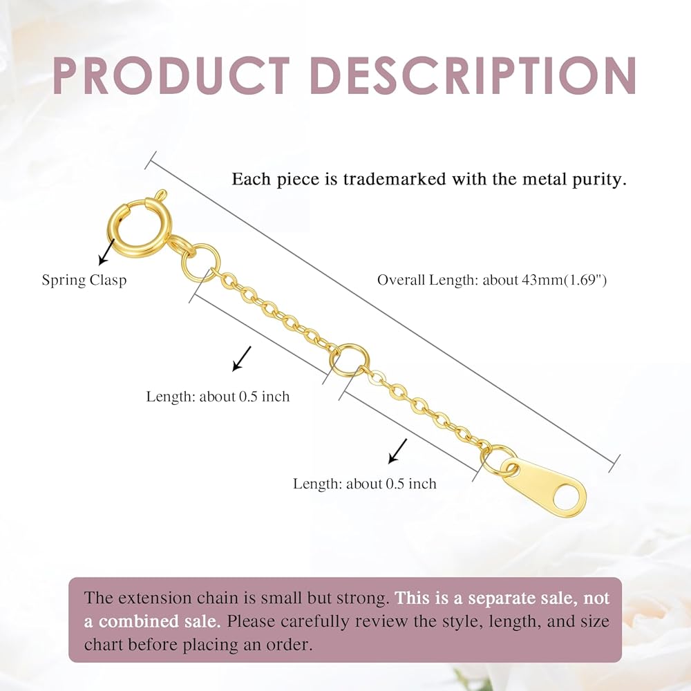 • Length Available: 1inch, 2inch, 3inch, 4inch. Each extender chain comes with Spring Clasp, which can clasp the ends of your necklace closely and firmly, easy to put on and take off.