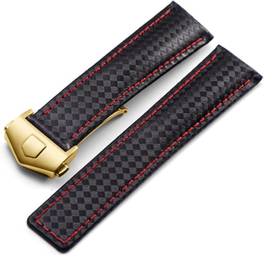 حزام ساعة 20 22 مم من ألياف الكربون من جلد العجل باللون الأسود والأحمر، لملحقات استبدال حزام الساعة TAG Heuer 20 مم 22 مم، وحزام ساعة رجالي ومشبك نشر in Kuwait