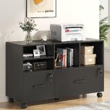 • Durable & Stable Structure - Made of top-grade board for long-term use, the office file cabinet is scratch-resistant and water-resistant. It has a maximum weight capacity of 100 pounds.The lower drawer is also equipped with metal handles to ensure easy pulling while adding sophistication to the look!