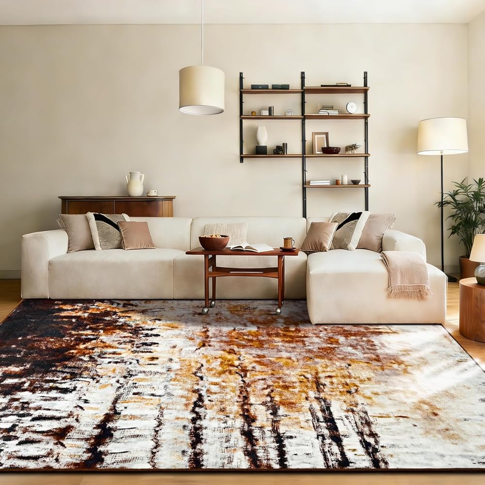 • Ultra-soft Touch: FlyDOIT 5x7 living room rugs crafted from ultra-soft faux wool fibers, which creates a dense texture and soft pile, providing a soft touch and great comfort for your skin. Perfect for families with children and pets, this abstract rustic brown rug creates a cozy surface for play, rest, and everyday living