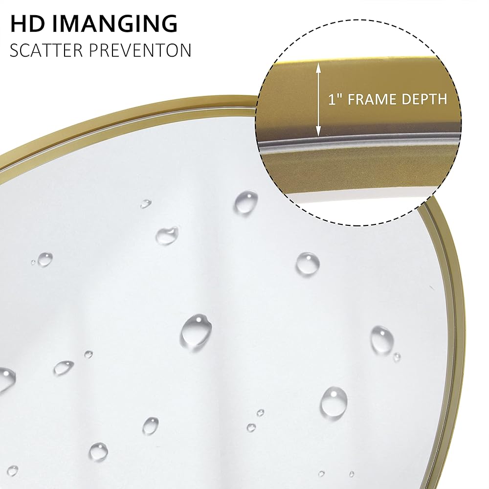 • 【انعكاس شفاف كريستالي وخالية من التشويه】توفر هذه المرآة البيضاوية الذهبية دقة عالية مع زجاج فائق الوضوح 4 مم، بينما يحمي التصميم المجوف الحواف. تضيف الزوايا الدائرية الأمان، كما أن الإطار العميق مقاس 1 بوصة يرفع من جمال أي غرفة.
