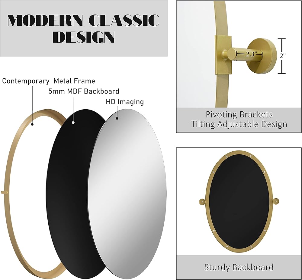 • 【بيت المزرعة إلى التنوع الحديث】قم بإقران الإطار الذهبي بالديكور الصناعي أو اللمسة النهائية الذهبية مع لمسات لامعة. استخدم المرايا البيضاوية في غرف المعيشة أو الحمام أو الممرات أو استوديوهات الماكياج لمزيد من العمق والضوء.