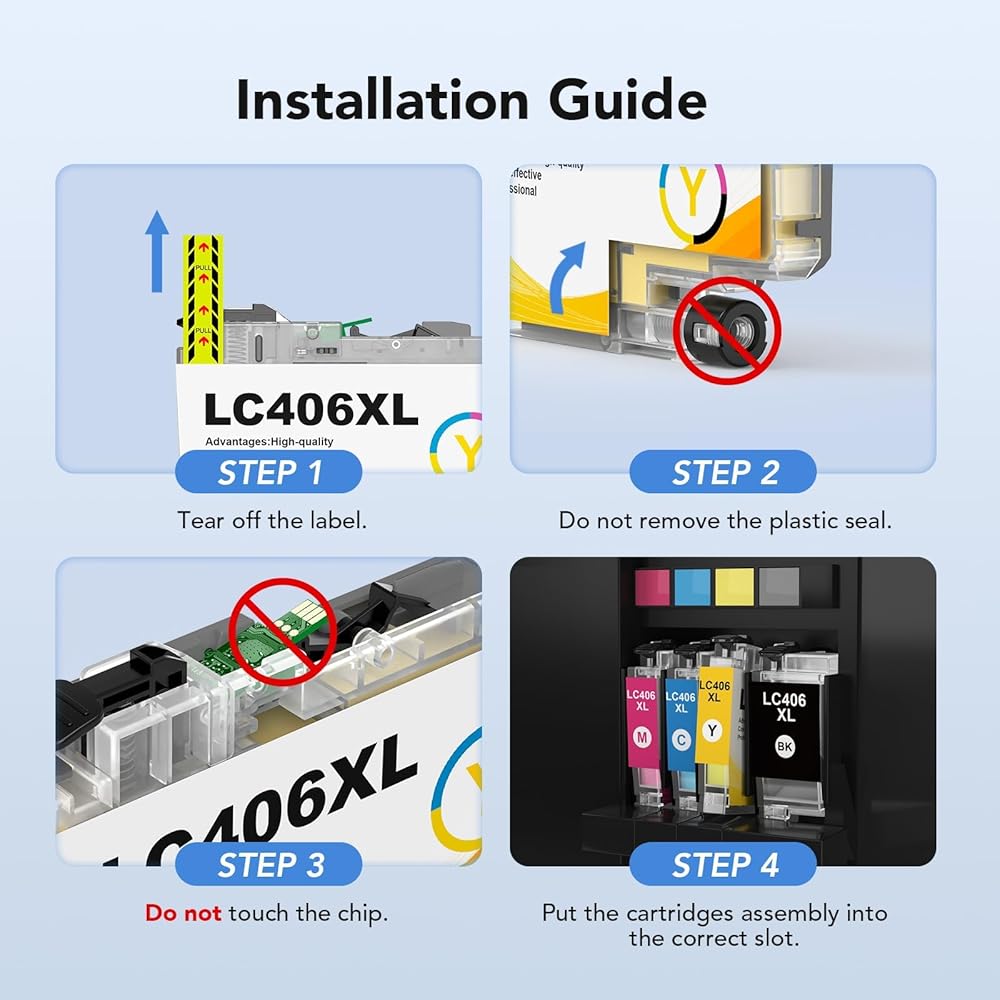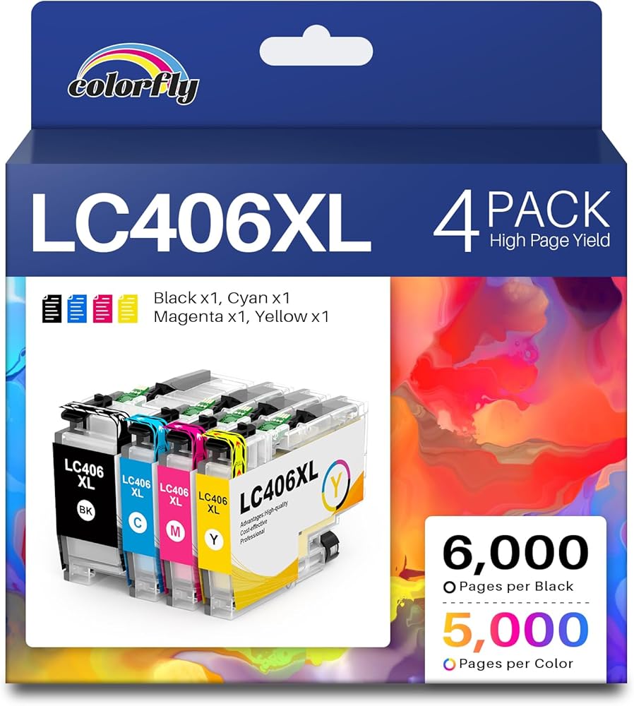 خراطيش حبر LC406XL عالية الإنتاجية لخراطيش حبر Brother LC406 تستخدم LC406XL LC 406-XL مع طابعة Brother MFC-J4335DW MFC-J5855DW MFC-J5855DW MFC-J6955DW (4 عبوات BK/C/M/Y)