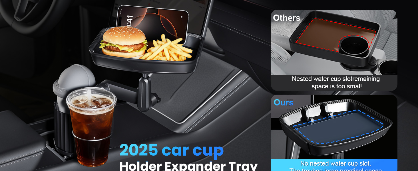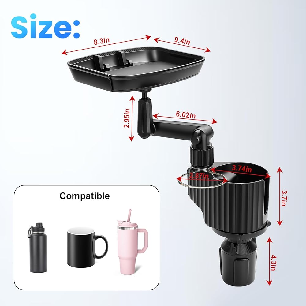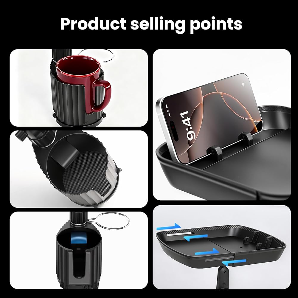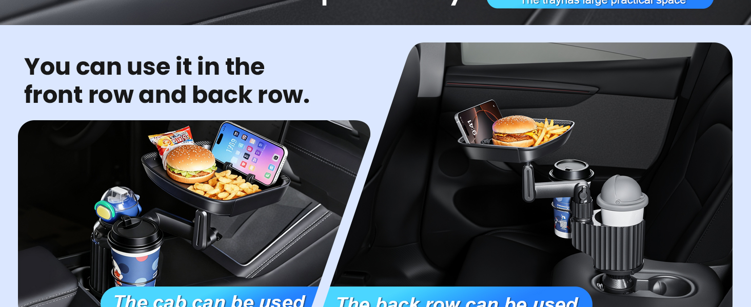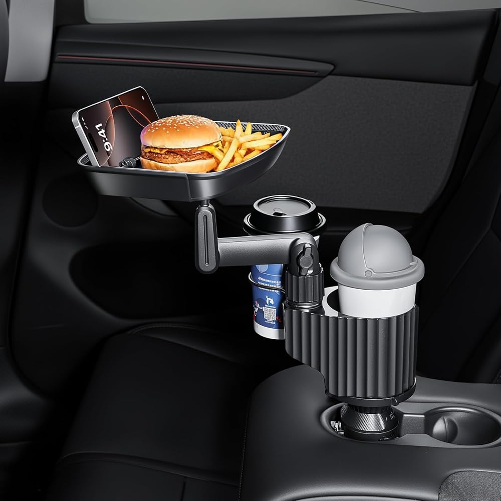 ☆ صينية حامل أكواب السيارة - يمكن أن تكون صينية المشروبات متعددة الوظائف للسيارات بمثابة طاولة طعام مؤقتة للوجبات داخل السيارة وتعمل أيضًا كحامل للهاتف. تسمح الصينية القابلة للدوران بزاوية 360 درجة بوضع عناصر مثل الهواتف والمفاتيح والوجبات الخفيفة والمحافظ. إنها تضيف مساحة وعملية لسيارتك دون أن تشغل مساحة.