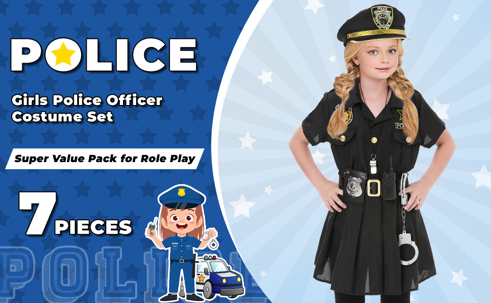 Police Officer Costume for Kids, Girls Police Costume for Kids, Halloween Costumes for Girls Kids,Cop Police Uniform for Girls, Police Outfit for Party Dress Up for Halloween Party, Role-Playing