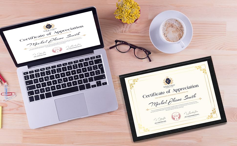 قماش قابل للتخصيص بالكامل: يوفر التصميم المركزي الواسع مساحة واسعة لإضافة رسائل شخصية أو أختام رسمية أو ملصقات لاصقة. أنشئ تحفة فنية فريدة من نوعها عن طريق إضافة خطوط وشعارات توقيع مخصصة. مثالي لمعلمي المدارس ومديري الموارد البشرية ومخططي الأحداث الذين يبحثون عن ورق دبلوم عالي الجودة.