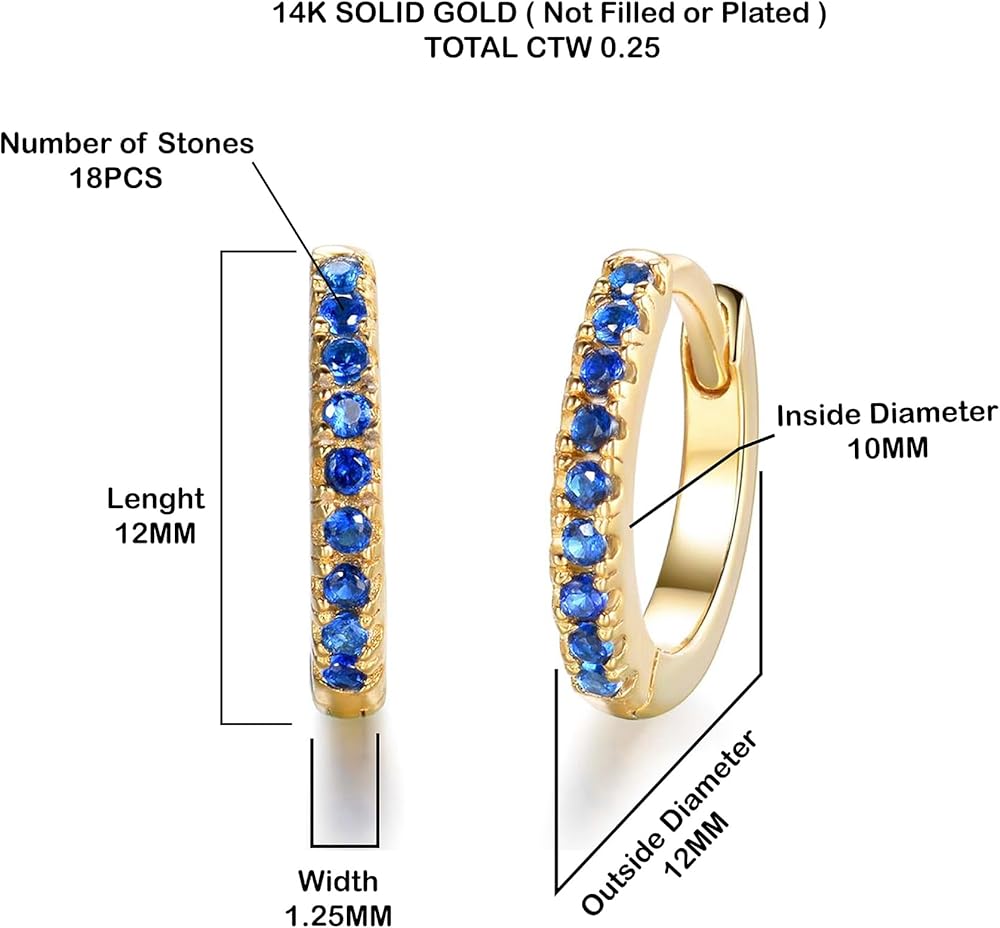 Elegant Sapphire Hoop Earrings - Perfect Size | Hypoallergenic 14k solid gold