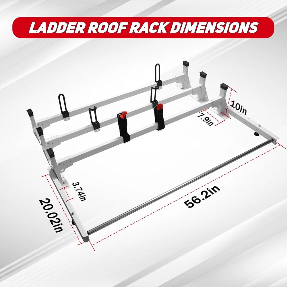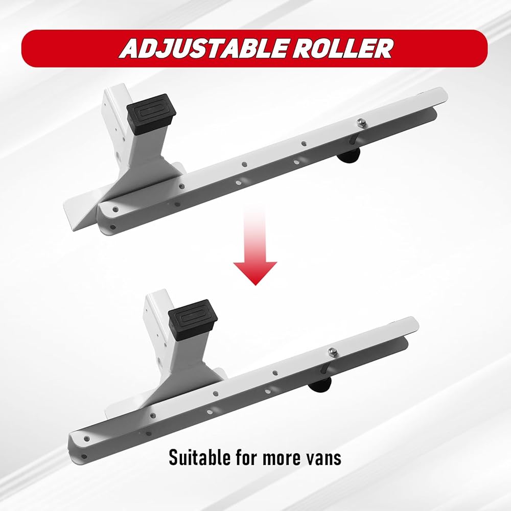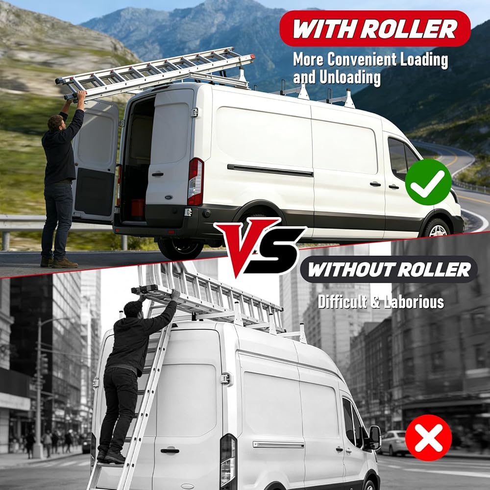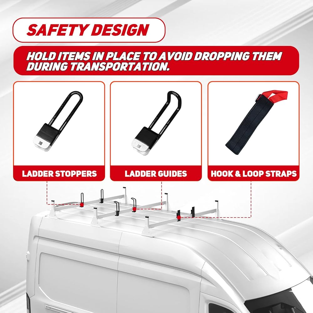 • الملاءمة: رف سلم فان مناسب لموديلات 2015-2024 Ford Transit 150، 250، 350. ملحوظة: غير مناسب لـ Transit Connect. أقصى سعة للحمل: 800 رطل.