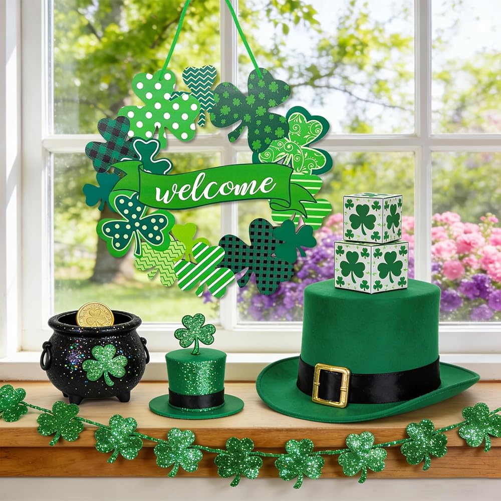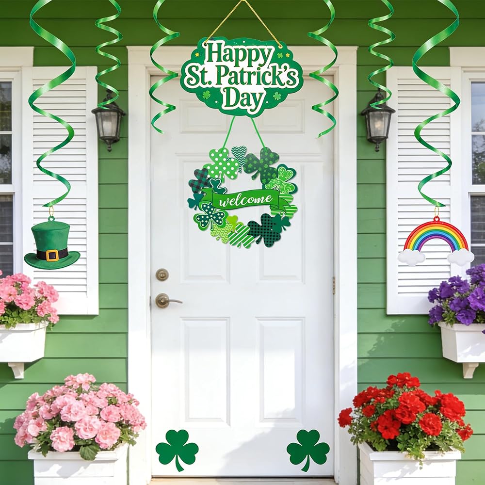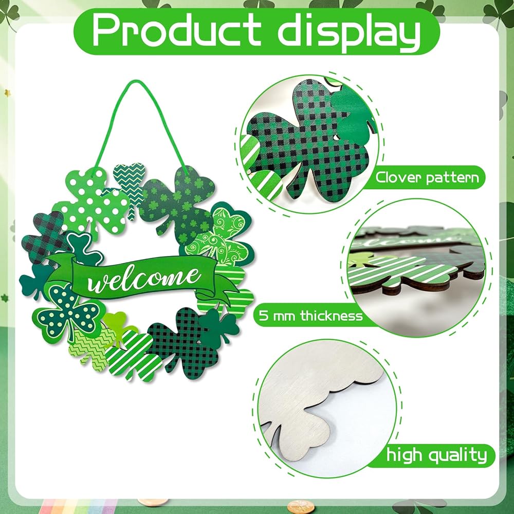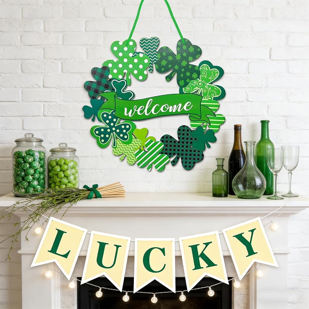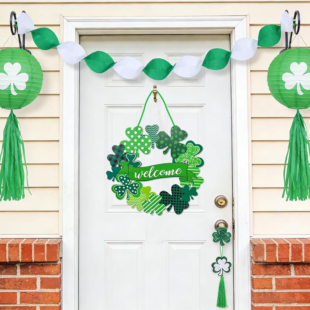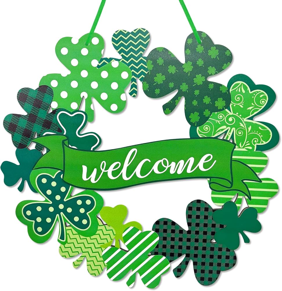 • 🍀 Vibrant St. Patrick's Day Welcome Wreath:Welcome guests in festive style with our Saint Patrick's Day wreath, featuring a charming collection of patterned shamrocks in stripes, plaid, and polka dots, centered around a classic "welcome" banner. This beautifully crafted piece brings instant Irish cheer and is one of the most welcoming st patricks day decorations for front door.