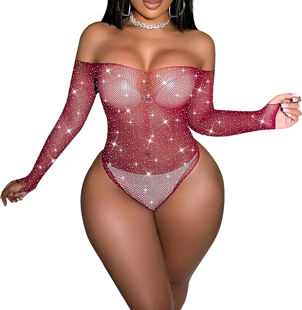 • Style: Mesh bodysuit for women,exotic wear dancer outfits, mesh one piece teddy lingerie, fishnet lingerie, rhinestone body suit,women's exotic costumes.
