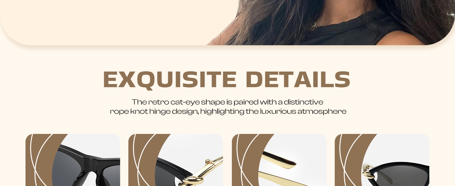 • Gold Accents for Elegance: The gold accents on the frames give these sunglasses a luxurious and elegant appearance. The combination of the classic cat eye shape and the shimmering gold details makes them a standout piece for any outfit.