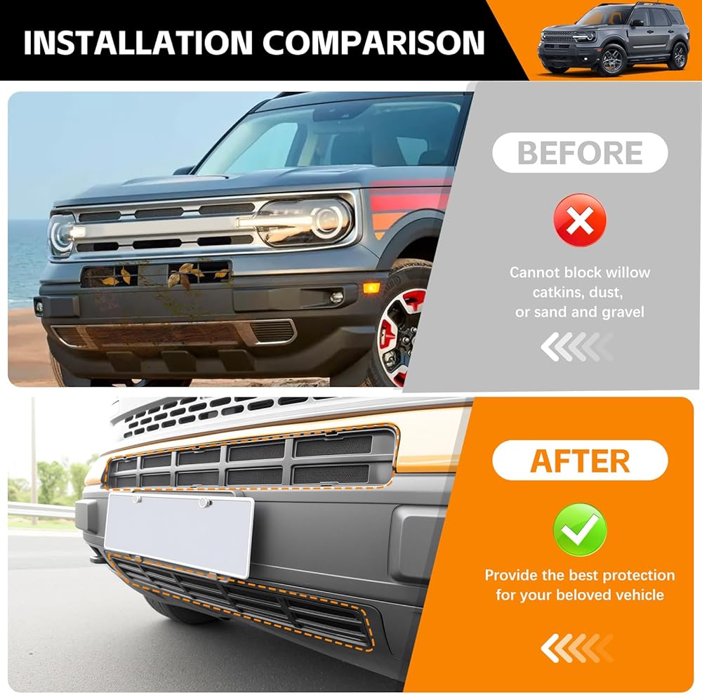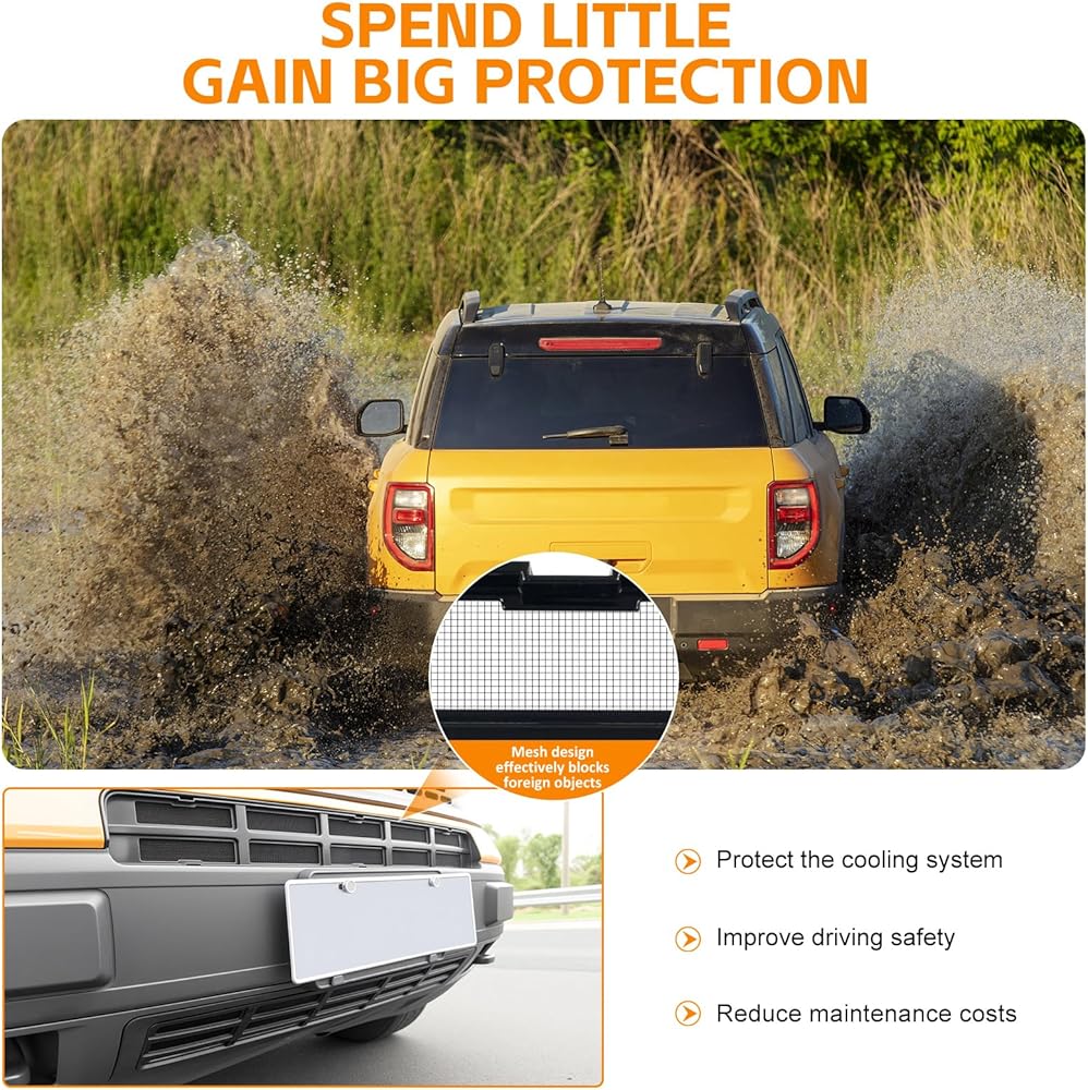 إدراج شبكة مصبغة متوافقة مع 2021-2024 Ford Bronco Sport المصد الأمامي السفلي غطاء حماية الشبكة لملحقات Ford Bronco الرياضية 2023