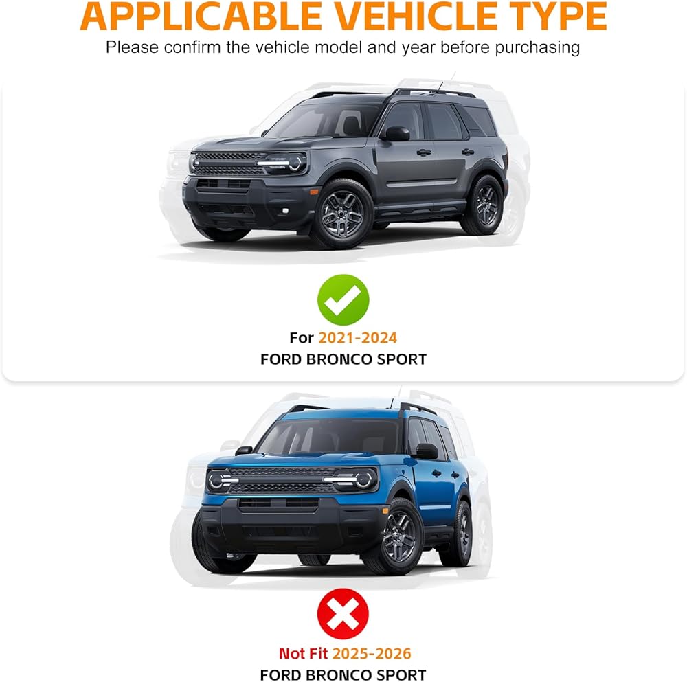 - مقاس مخصص -- مصمم خصيصًا لسيارة برونكو سبورت 2021-2024. تأكد من طراز سيارتك قبل الشراء للحصول على ملاءمة مثالية.