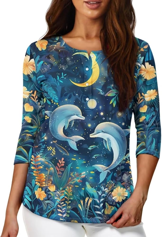 TOADDITDO Women's 3/4 Sleeve Shirts Casual Tunic Tops Blouses Athletic Shirt with Buttons