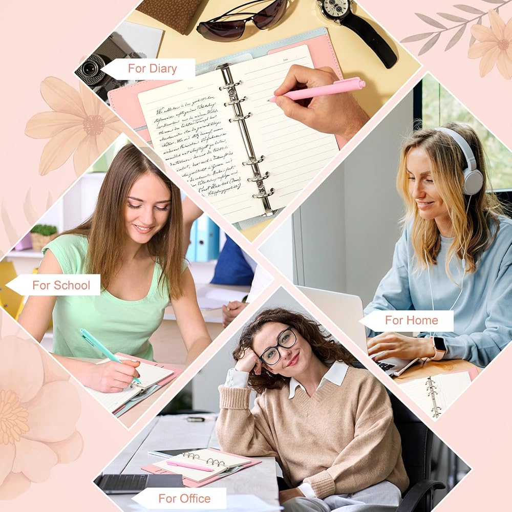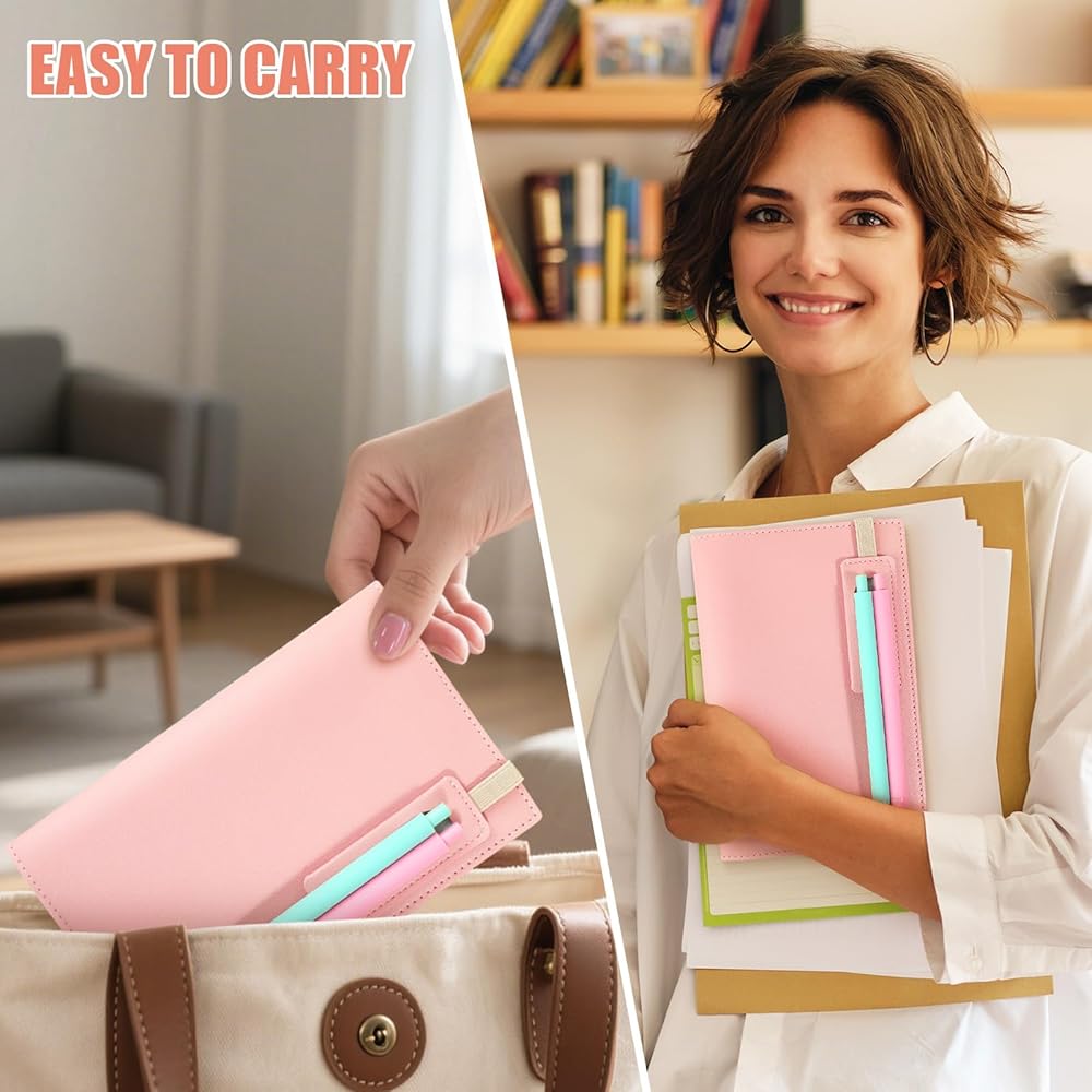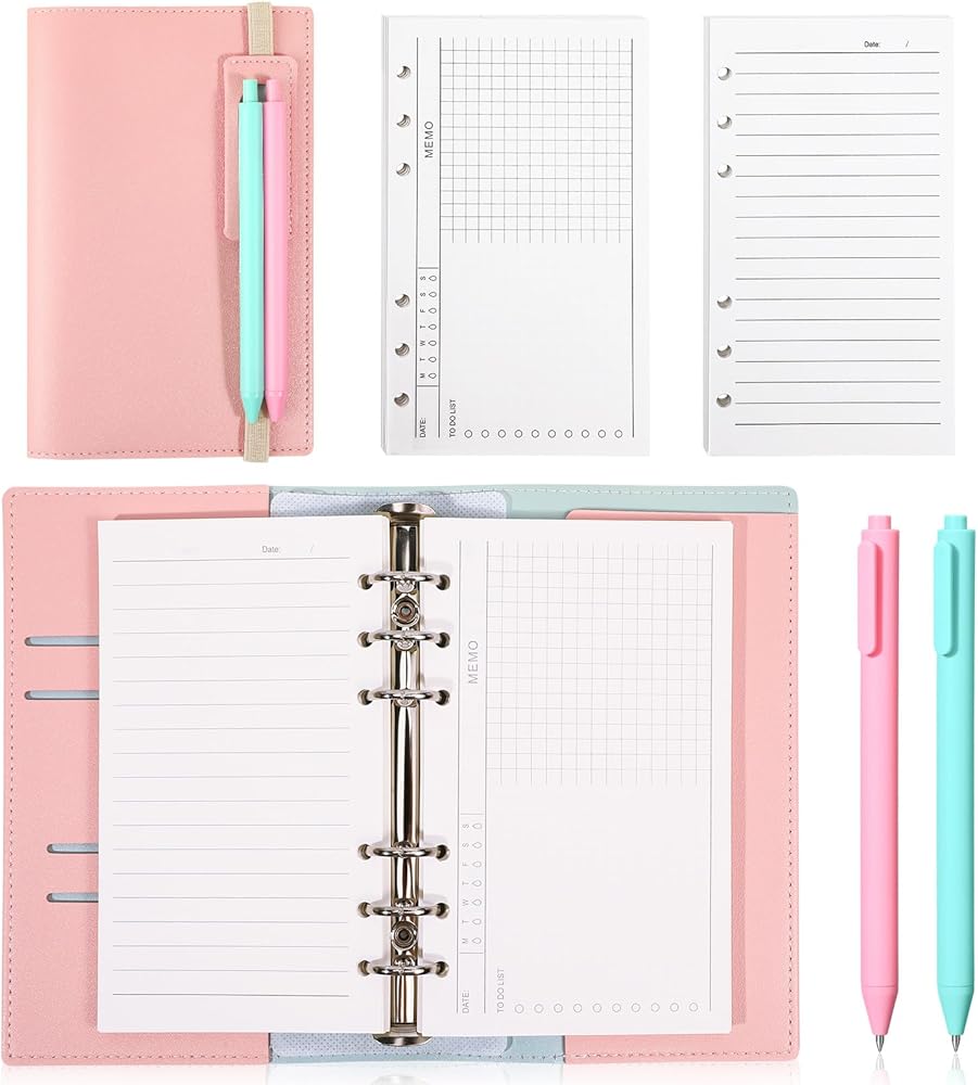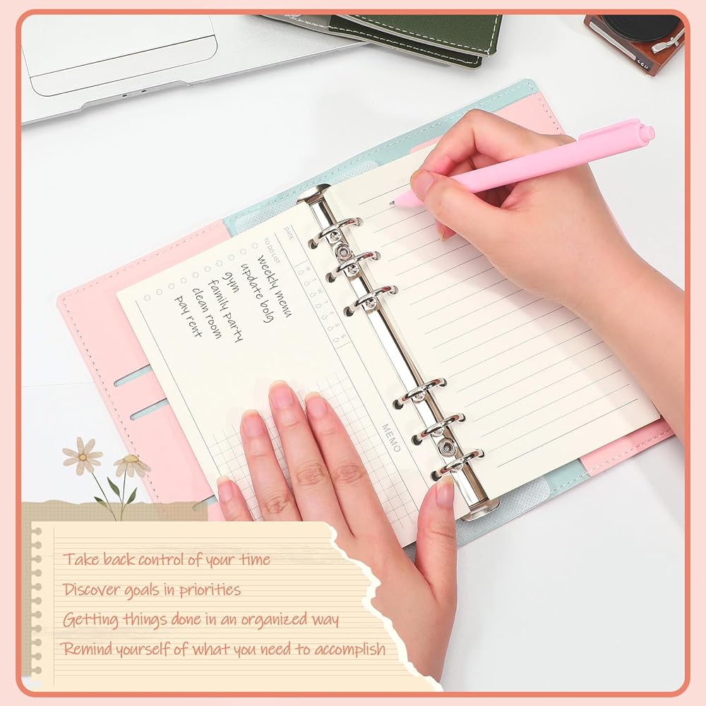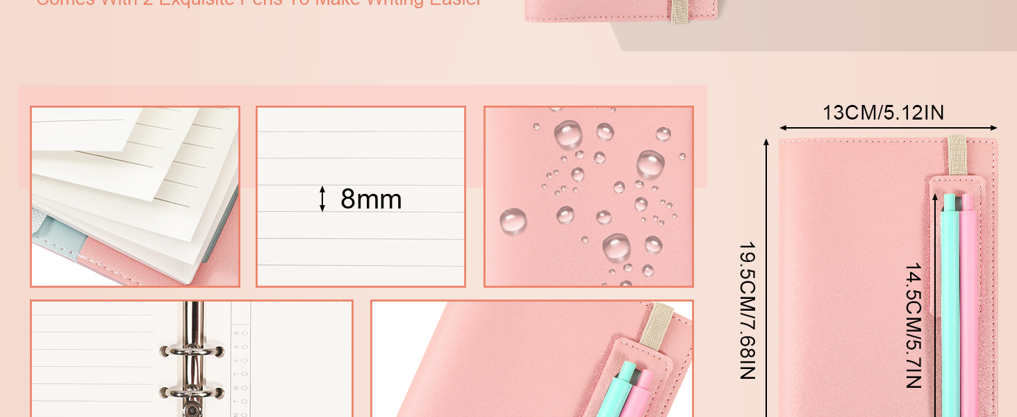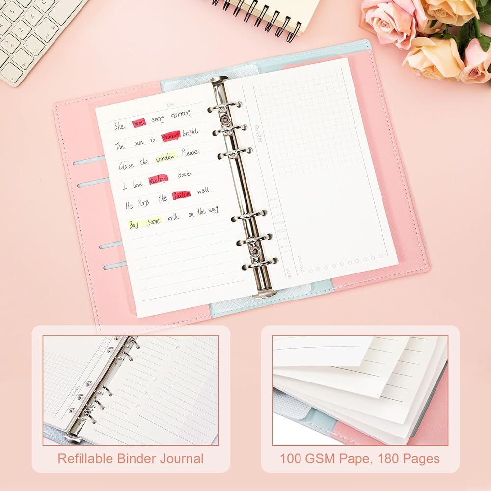 تصميم متعدد الاستخدامات: يتميز الكمبيوتر المحمول بـ 6 حلقات، وفتحات بطاقات متعددة للكوبونات، وبطاقات الائتمان، وبطاقات الهوية، وبطاقات العمل، وما إلى ذلك، ومشبك قوي من سبائك الفضة. 180 ورقة من ورق 100 جرام لكل متر مربع، 1 قلم وردي و1 قلم أخضر. يأتي الكمبيوتر الدفتري القابل لإعادة الملء مزودًا بشريط مطاطي لسهولة التنظيم. عندما تكون الورقة المتضمنة ممتلئة، يمكنك إعادة ملئها بورق إعادة التعبئة المفضل لديك ذو 6 فتحات. إنه مثالي للمفكرة أو اليوميات