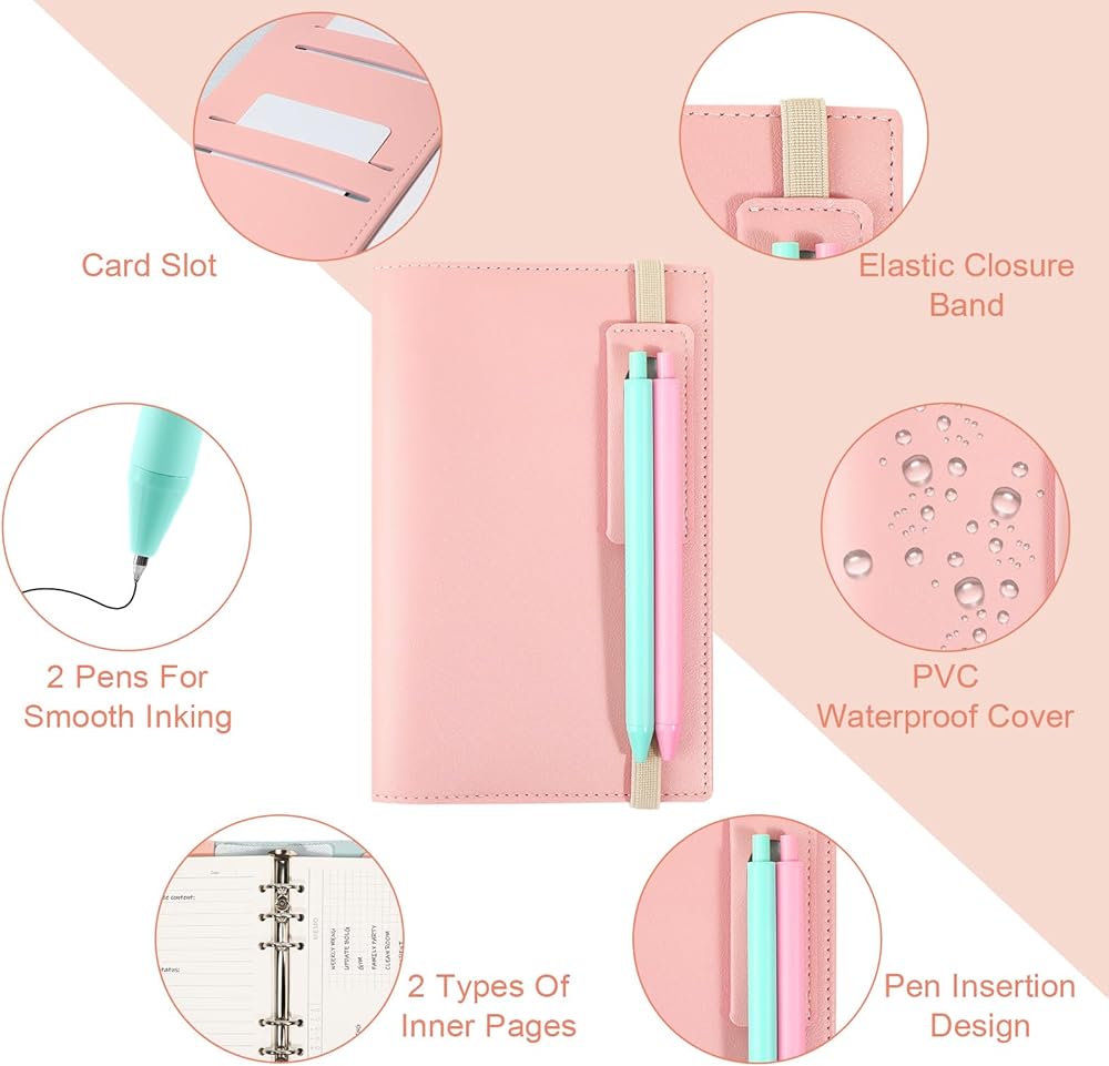 miikoul دفتر يوميات صغير الحجم مع قلم، كتاب مخطط أسبوعي قابل لإعادة الملء دفاتر يومية مبطنة 100 جرام في المتر المربع مفكرة محمولة للعودة إلى اللوازم المدرسية كتابة 7.6 بوصة × 5 بوصة 180 صفحة