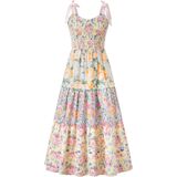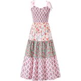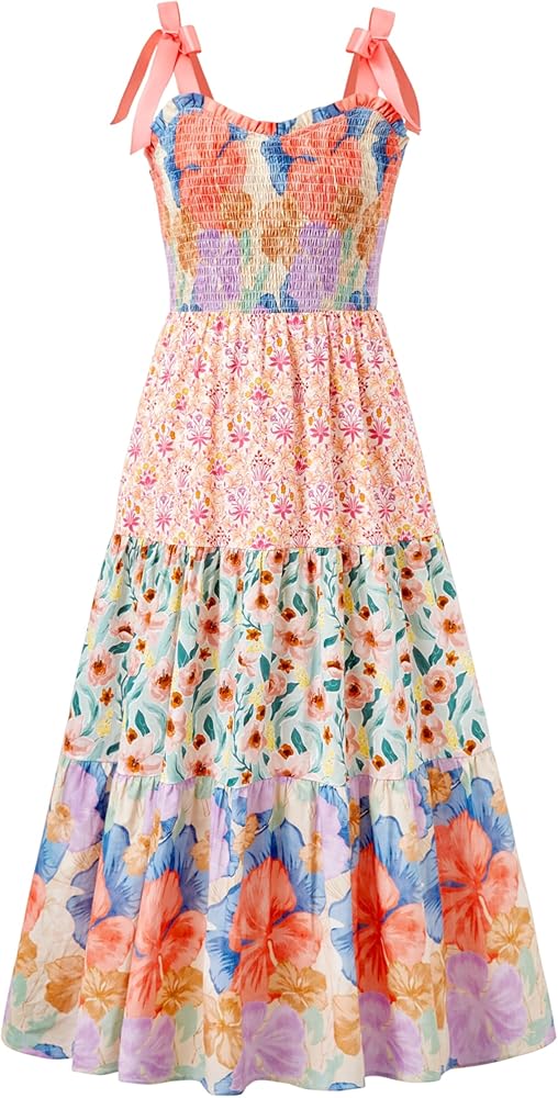 Boho-Chic Design with Cute Ribbon Straps: This girls' boho dress captures a fancy, trendy look with its 100% cotton fabric and silky ribbon bow straps. Featuring a floral patchwork bottom skirt, smocked bodice and a ruffle neckline, this girl summer dress adds a touch of bohemian charm to your girl's essential wardrobe. Ideal for both little and big girls who love fun and elegant styles