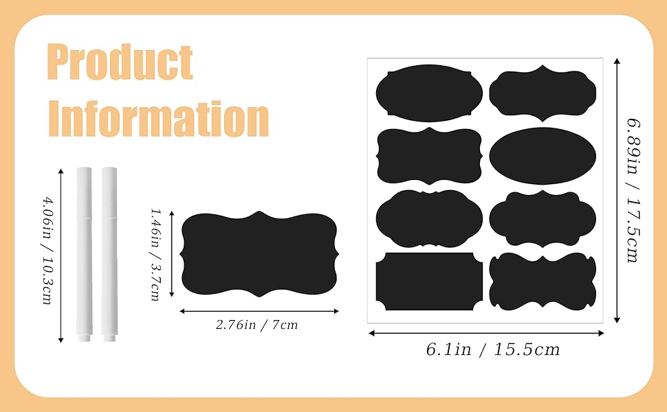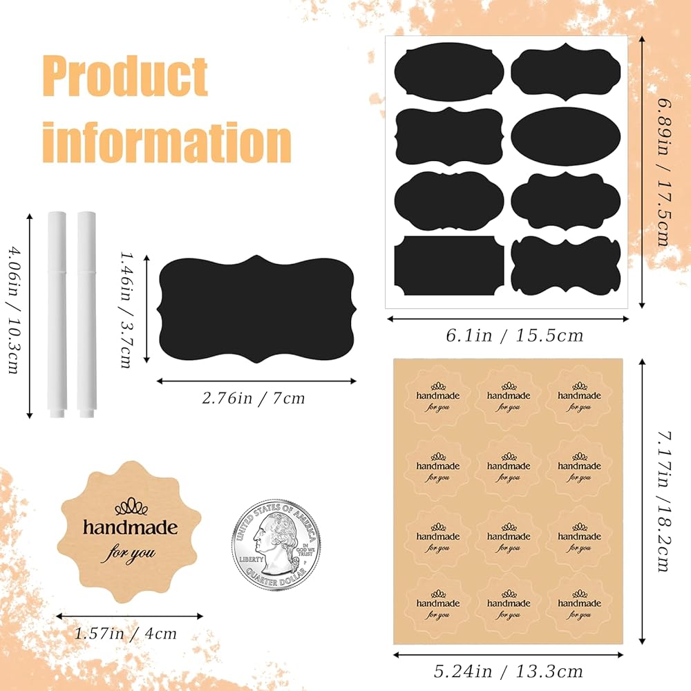تتضمن المجموعة: 80 ملصق سبورة سوداء قابلة لإعادة الاستخدام (2.76 بوصة × 1.46 بوصة)، 2 قلم طباشير أبيض قابل للمسح، و60 ملصقًا "مصنوع يدويًا من أجلك" (1.57 بوصة × 1.57 بوصة). هذا المزيج من الملصقات يجلب المزيد من الراحة لحياتك اليومية.