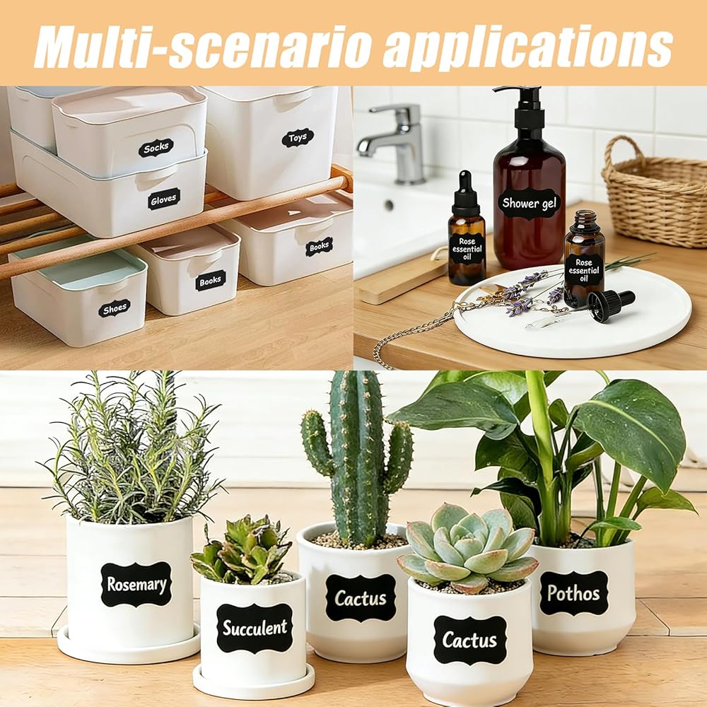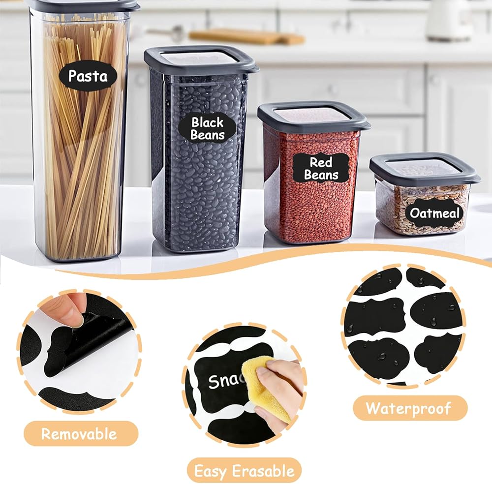ملصقات السبورة السوداء: تعمل ملصقات السبورة بشكل مثالي مع البرطمانات: برطمانات الماسون، وبرطمانات البسكويت، وبرطمانات التعليب، وبرطمانات الجيلي، وبرطمانات التوابل، وزجاجات الرش، وزجاجات الماء أو الخلط، وكؤوس النبيذ، وصناديق قصدير القهوة أو الشاي، والعلب، والمزيد.