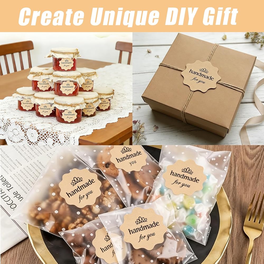 ملصقات مصنوعة يدويًا من أجلك: ملصقات "مصنوعة يدويًا من أجلك" تلبي احتياجاتك اليومية الإبداعية والهدايا المخصصة والحرفية. إنها تضيف اللمسة النهائية المثالية إلى أكياس الخبز وأكياس الوجبات الخفيفة وأكياس الخبز وصناديق البينتو وصناديق البسكويت وبرطمانات المربى وغيرها من العناصر.