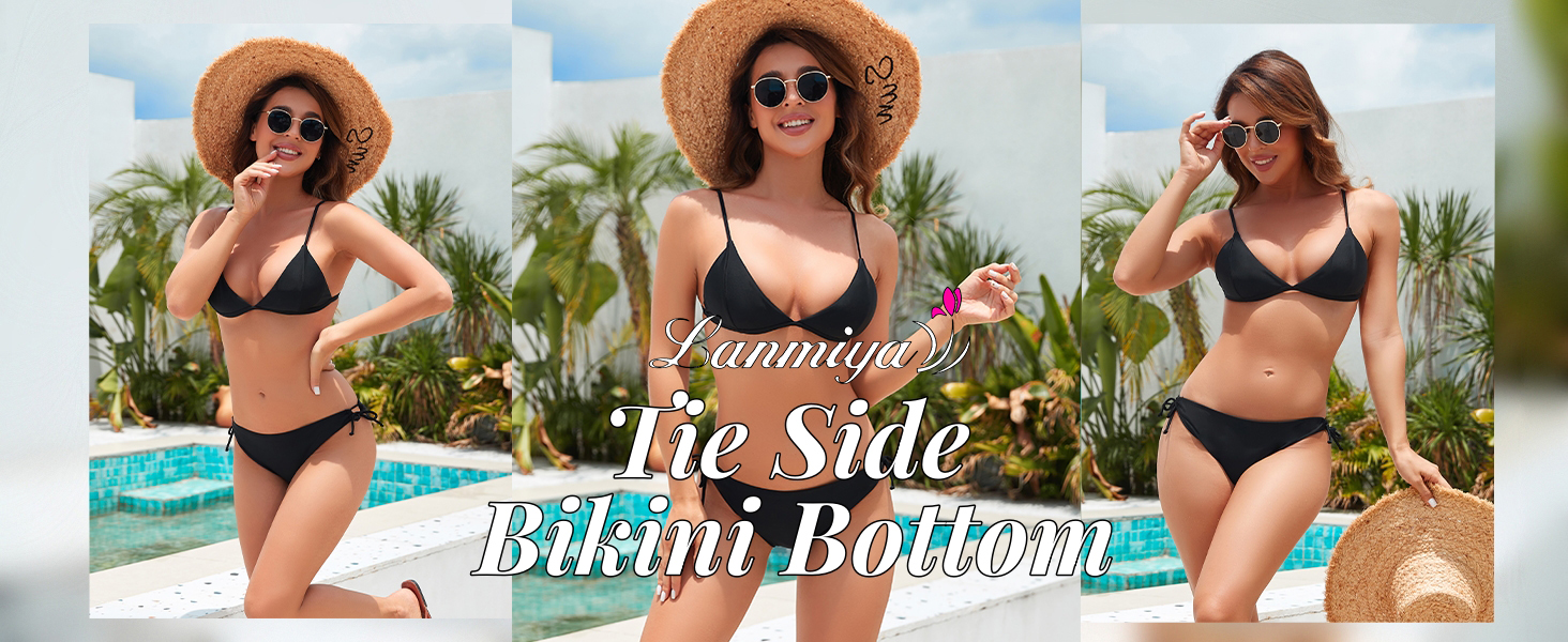 يحتوي كلا جانبي الجزء السفلي من السباحة على أشرطة، والتي لا تمنع الجزء السفلي من السباحة من الانزلاق فحسب، بل تجعل الجزء السفلي من السباحة أكثر جمالاً.