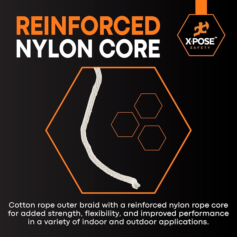 قلب من النايلون المقوى - جديلة خارجية من حبل القطن مع قلب حبل من النايلون المقوى لمزيد من القوة والمرونة وتحسين الأداء في مجموعة متنوعة من التطبيقات الداخلية والخارجية.