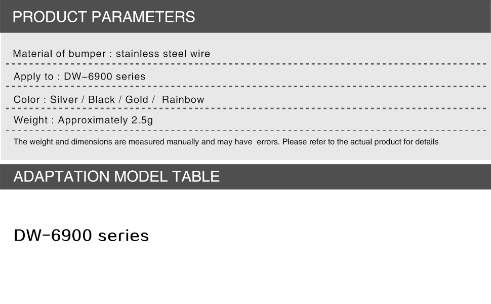 ممتص الصدمات لحماية شاشة الساعة من الفولاذ المقاوم للصدأ - متوافق مع سلسلة DW-6900