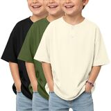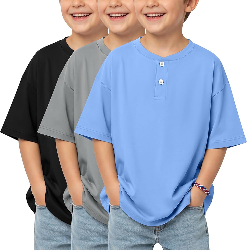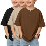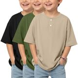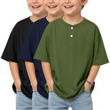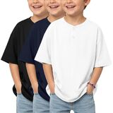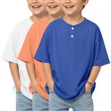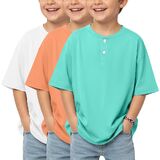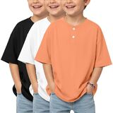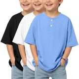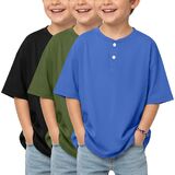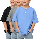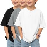 3 Pack boys short sleeve henley oversized t shirts