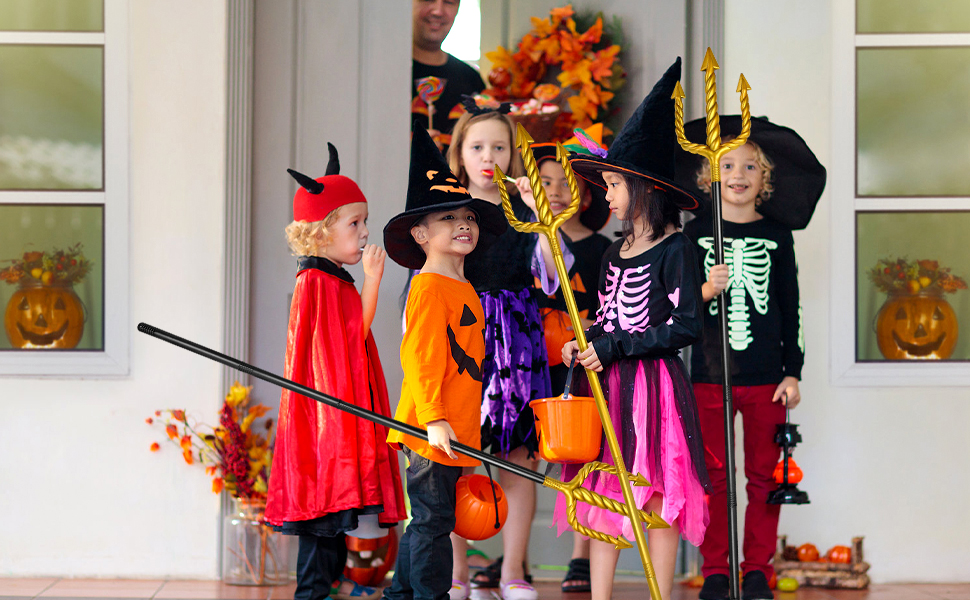 TOY TRIDENT - Plastic trident weapon decorations are made of tested materials that are non-toxic and safe. Our gold trident is very sturdy and resistant to paint loss for long term use. The lightweight plastic design makes trident props comfortable to carry, while the adjustable length ensures a perfect fit. If you receive our gold sea king trident costume props found to have any problems, please contact us as soon as possible, we will give the best solution!