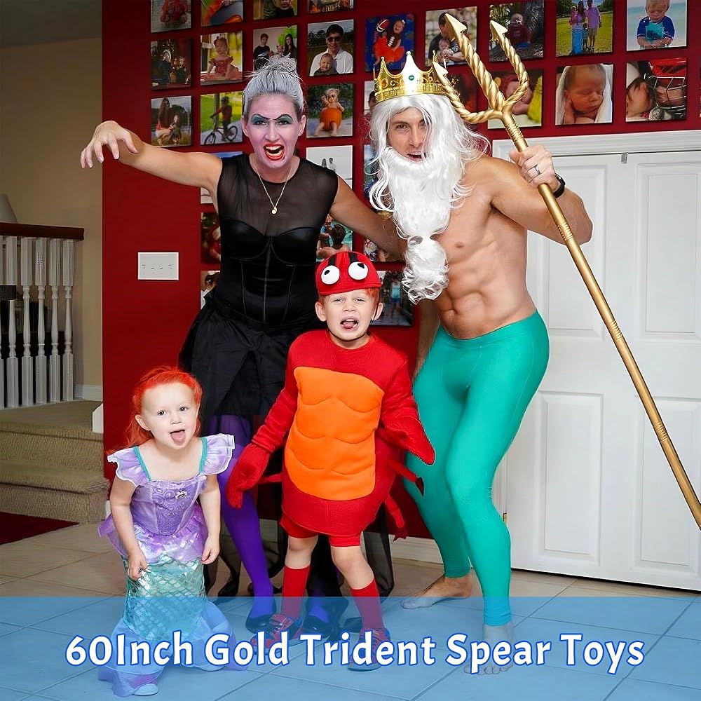 GOLD TRIDENT PROP - At 60 inches(152cm)in total length, the golden trident is much longer than any other trident on the market. Trident weapon plastic trident prop consists of 5 parts, lightweight, adjustable, and features a hollow design for easy assembly and disassembly to match a variety of scenarios, gold trident toy trident is the ideal accessory for playing the Neptune king, Poseidon and king.
