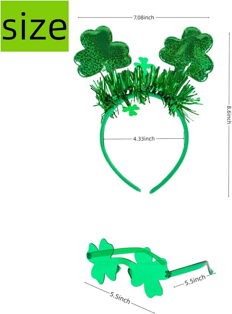Festive St. Patrick's Day Accessories – This set includes a stylish headband and green sunglasses, perfect for adding a fun and festive touch to your St. Patrick's Day celebrations, parades, or parties.