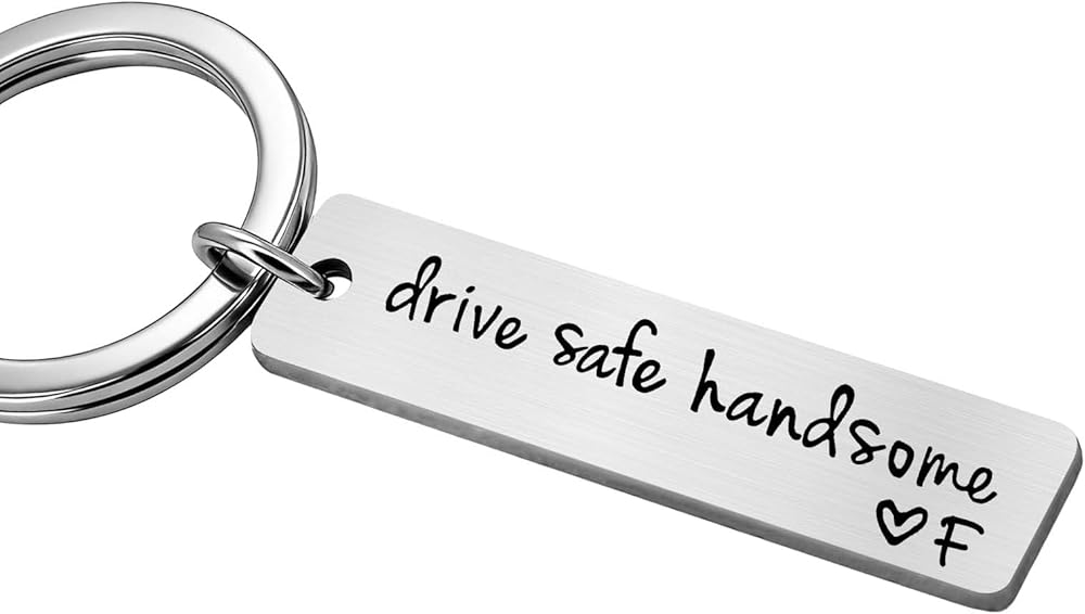 A Sweet “Drive Safe” Reminder He'll Carry Every Day:Engraved with “Drive Safe Handsome” and your initial, this keychain is a small but powerful reminder of your love every time he grabs his keys.