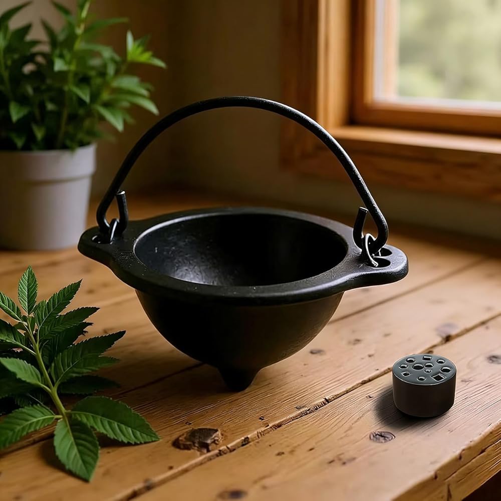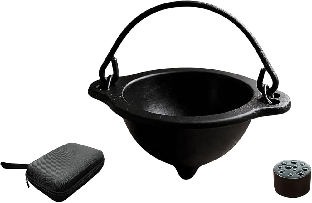 Elevate your spiritual practice with this beautifully crafted cast iron incense burner set from Acopelo. The 3-inch diameter cauldron-style burner features a sturdy handle for easy movement and comes complete with a convenient traveling case measuring 15cm x 10cm x 4.5cm. This versatile piece doubles as an elegant vintage-inspired home decor item while serving practical purposes for incense burning and smudging rituals. The set includes a dedicated incense stick holder to keep your space organized and clean. The durable cast iron construction provides stability and heat resistance, making it perfect for both incense and small candles. The compact size makes it ideal for creating sacred spaces in any room, while the included carrying case ensures safe transport and storage. Whether used for daily meditation, aromatherapy, or as a decorative accent, this traditional cauldron-style burner brings both functionality and aesthetic appeal to your space.