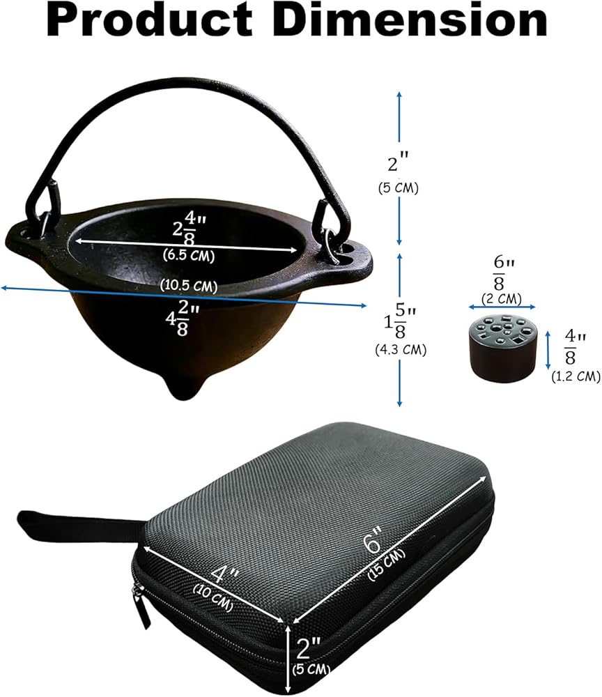 PORTABLE DESIGN WITH CASE: Includes custom-fitted hard shell traveling case measuring 4 x 6 x 2.5 Inch to safely transport and store your cauldron and accessories wherever you go