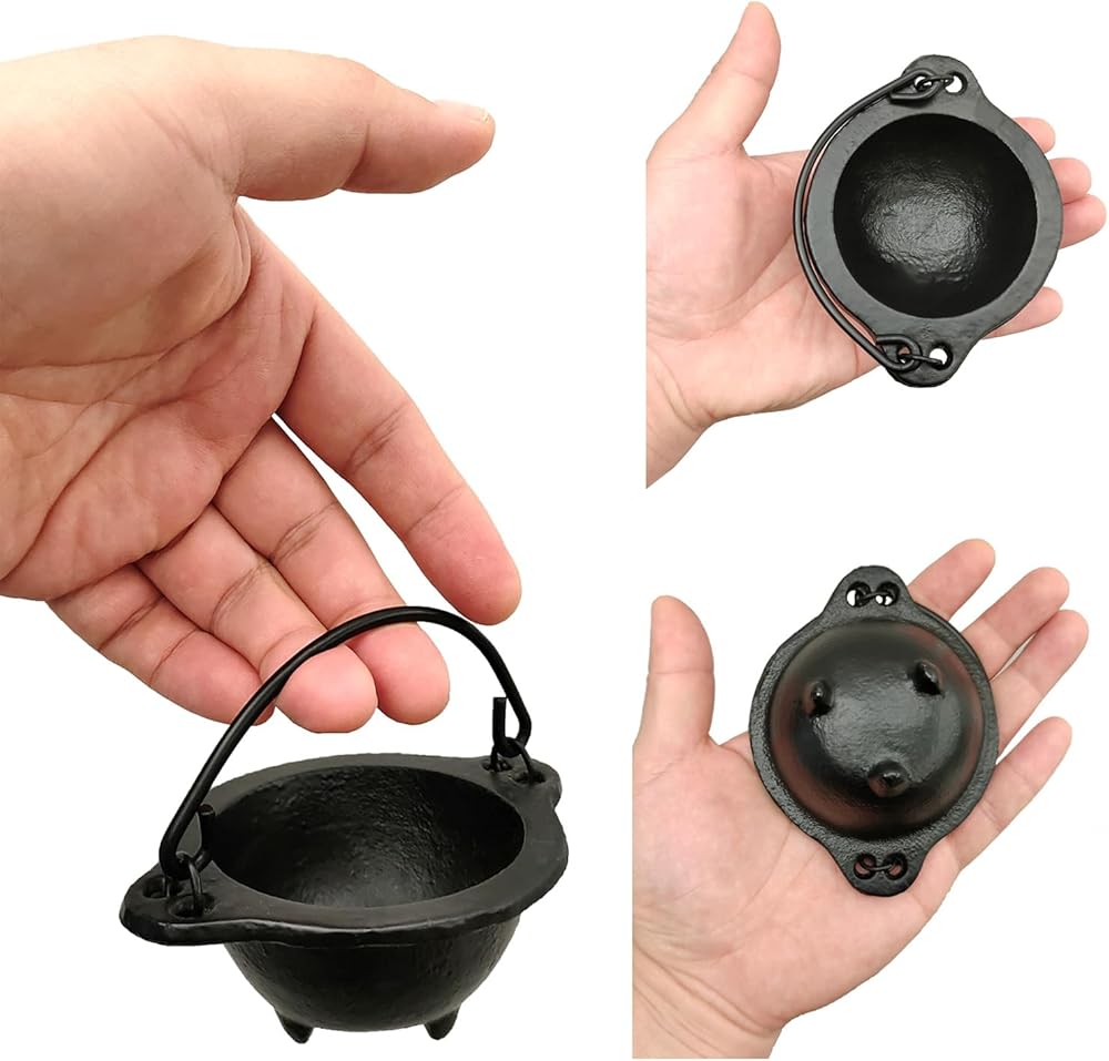 AUTHENTIC CAST IRON CONSTRUCTION: Durable 3-inch diameter cauldron with sturdy handle crafted from traditional cast iron material for long-lasting use and vintage aesthetic appeal