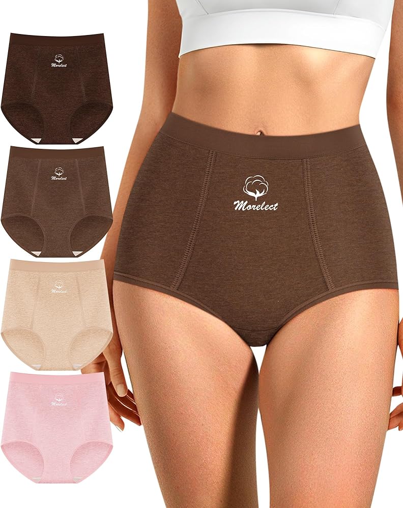 ملابس داخلية نسائية من MEIYATING مصنوعة من القطن مكونة من 4 قطع سراويل داخلية نسائية عالية الخصر مريحة وتغطية كاملة