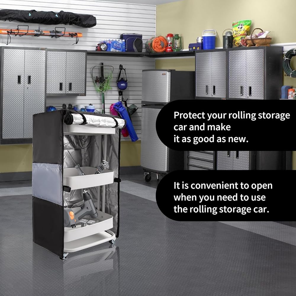 Utility Cart Cover Easy To Clearn: When the utility cart cover gets dirty, simply wipe it with a damp cloth or rinse it with water and air dry. The tool cart cover can be easily folded into small pieces for easy storage