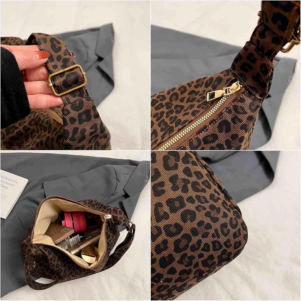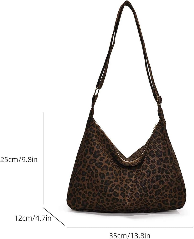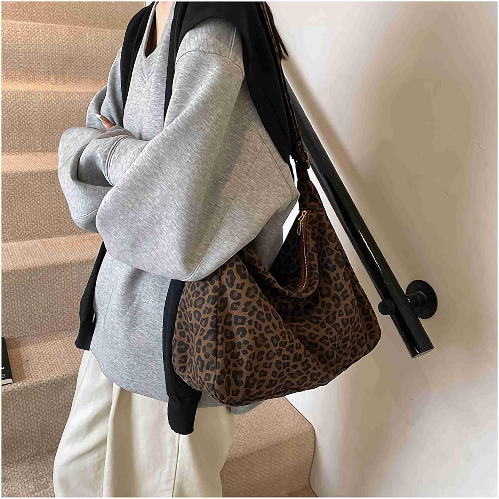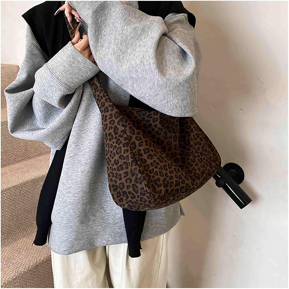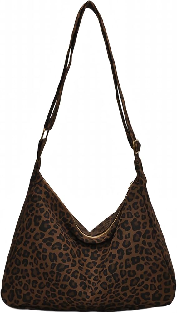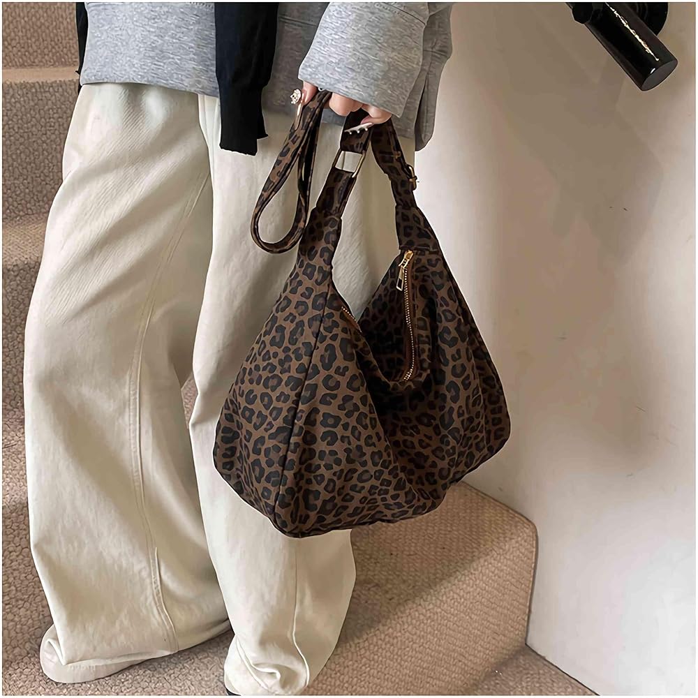 This stylish leopard print canvas shoulder bag combines fashion-forward design with everyday functionality. The eye-catching brown and black leopard pattern adds a bold, trendy touch to any outfit, making it perfect for women who want to make a statement. Crafted in a classic hobo style, this handbag features a spacious interior that easily accommodates your daily essentials, from your wallet and phone to makeup and keys. The adjustable shoulder strap allows you to customize the fit for maximum comfort, whether you shoulder or crossbody. The durable canvas construction ensures long-lasting use while maintaining a lightweight feel. The slouchy, relaxed silhouette gives this bag an effortlessly chic vibe that transitions seamlessly from casual daytime outings to evening events. Whether you're heading to brunch with friends, running errands, or enjoying a night out, this versatile leopard print bag adds the perfect finishing touch to your ensemble.