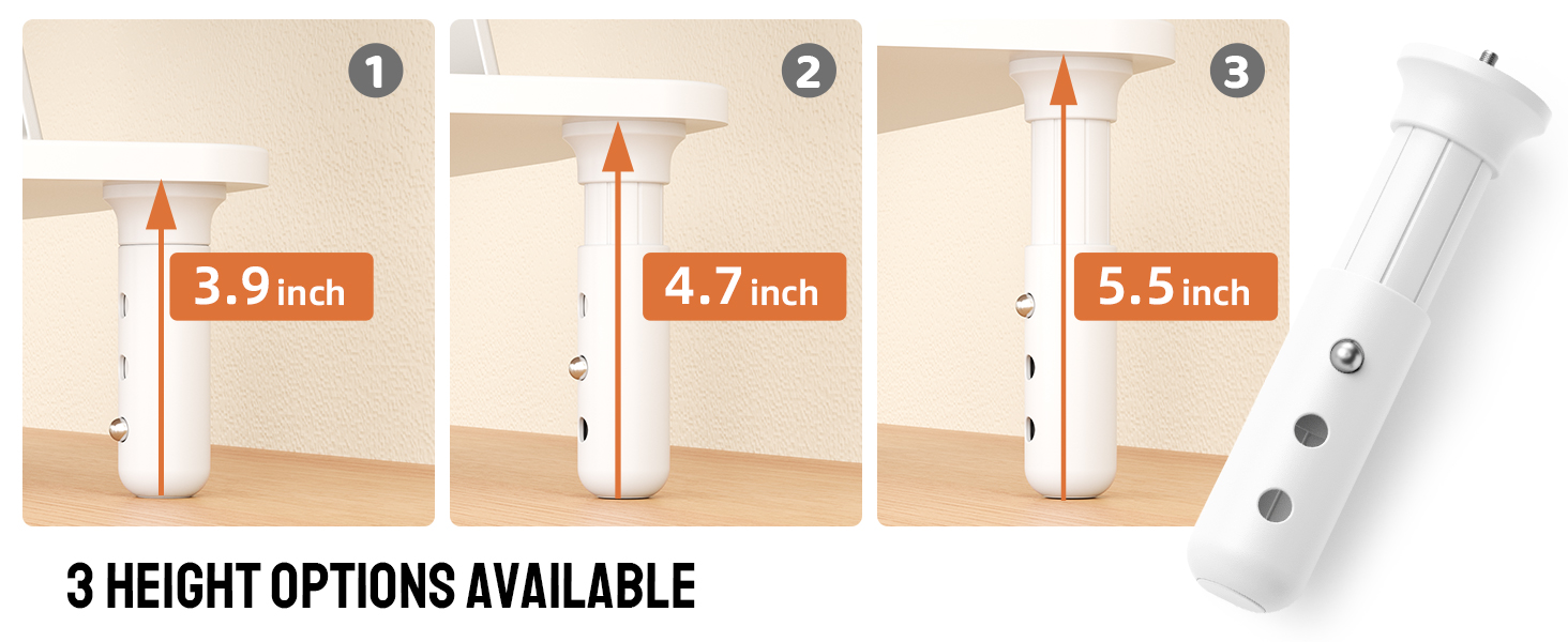 【ضبط الارتفاع بثلاث سرعات (4.9 بوصة إلى 6.5 بوصة)】 تسمح الأرجل القابلة للسحب مع 3 تروس متباعدة بشكل متساوٍ (فاصل زمني 20 مم/0.78 بوصة لكل منها) بتبديل الارتفاع مجانًا من 4.9 بوصة إلى 6.5 بوصة. قم بتخصيص الارتفاع بناءً على قامتك وعادات الاستخدام - لا مزيد من قيود الارتفاع الثابت! قم بزيادة مساحة التخزين أسفل المكتب للوحات المفاتيح أو الفئران أو اللوازم المكتبية، مما يوفر مساحة عمل مرتبة وموفرة للمساحة.